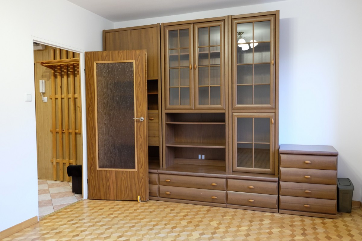 częściowo umeblowane (brak łóżek): szafy wbudowane, komoda, biurko etc.
