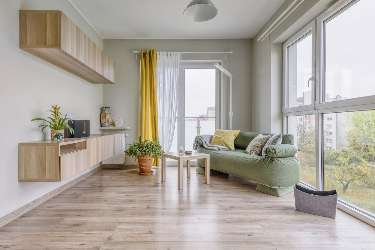 Serce mieszkania stanowi jasny, narożny salon o powierzchni 19,77 m², połączony z aneksem kuchennym. Duże okna wychodzące na wschód i północ zapewniają doskonałe doświetlenie wnętrza przez cały dzień, tworząc przytulną i ciepłą atmosferę. Z salonu można wyjść na obszerny balkon o powierzchni 7,5 m² - idealne miejsce na poranną kawę lub odpoczynek na świeżym powietrzu.
