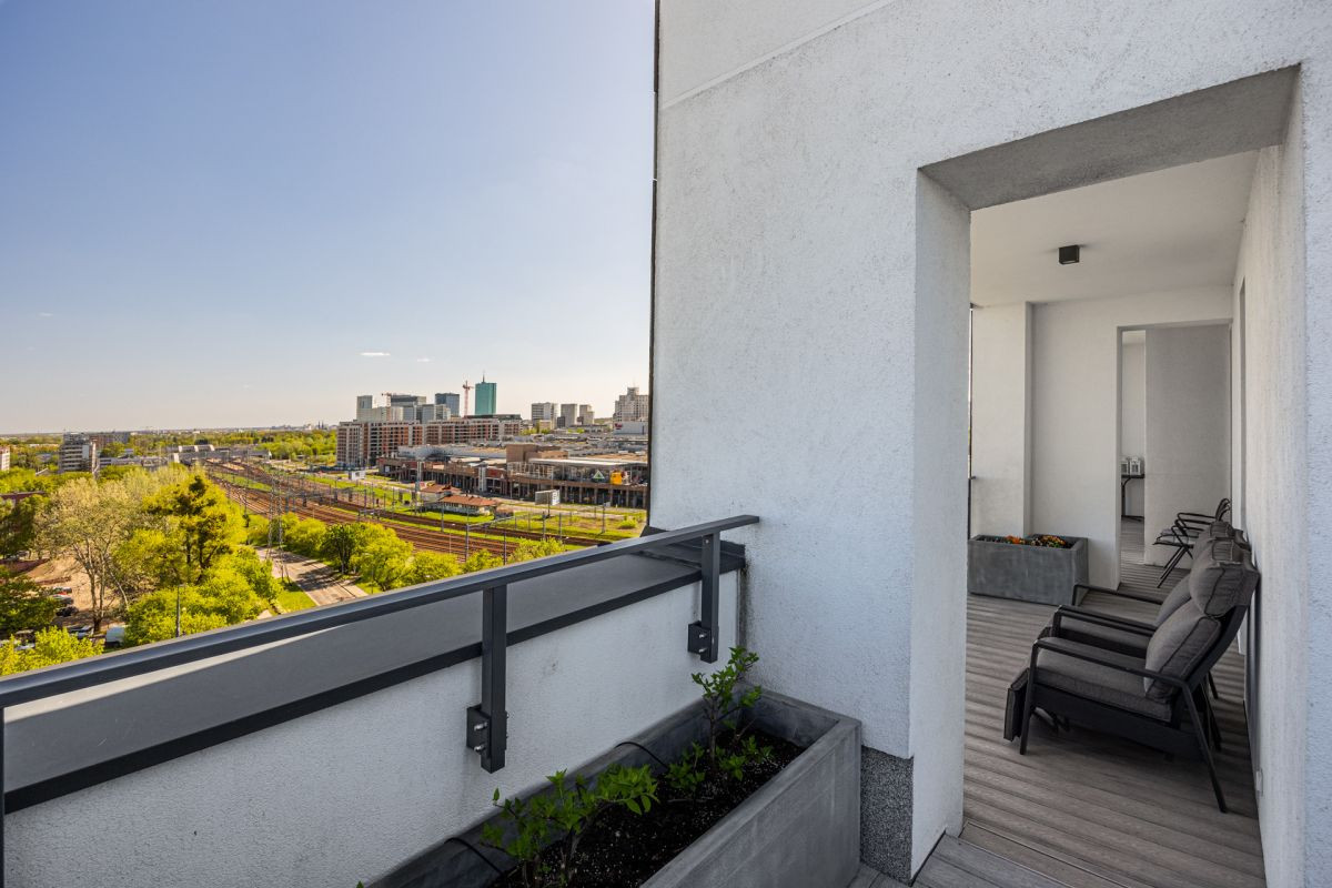 Okalające tarasy - z widokiem na centrum miasta, sypialnia z dużą garderobą i łazienką, świetnie zaprojektowana kuchnia - to atuty mieszkania, które wyróżniają go wśród innych.