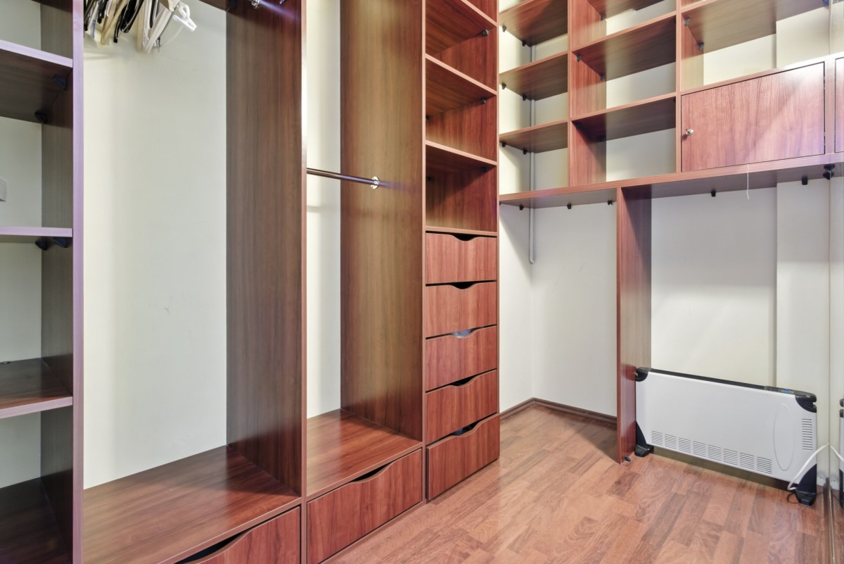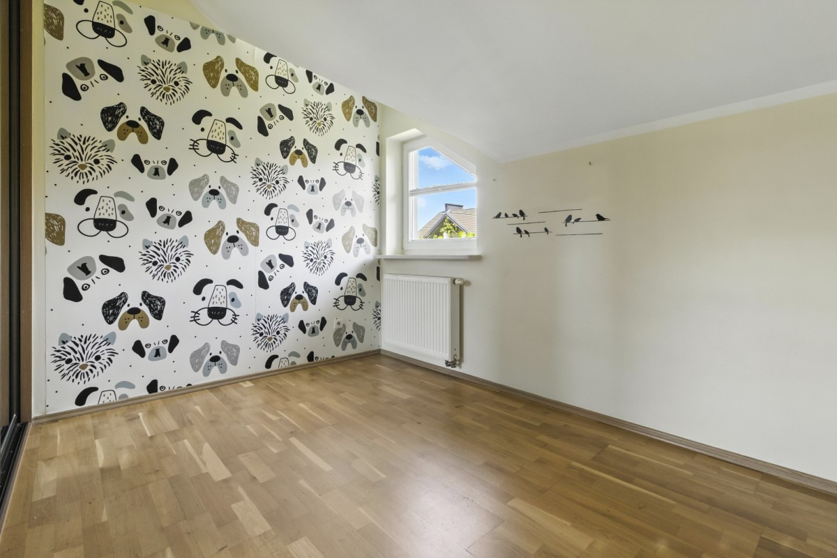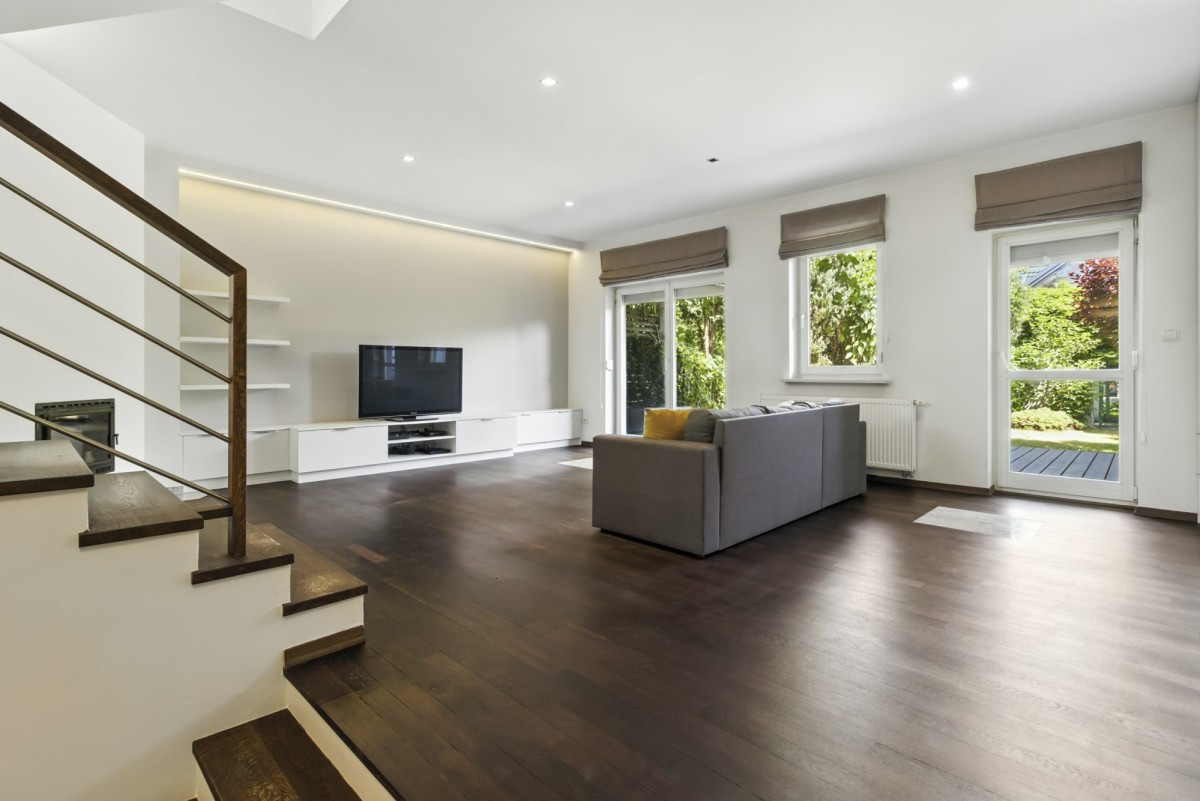 - salon z kominkiem i wyjściem na taras oraz do ogrodu. W salonie bardzo duża szafa na wymiar - praktyczne i estetyczne rozwiązanie,