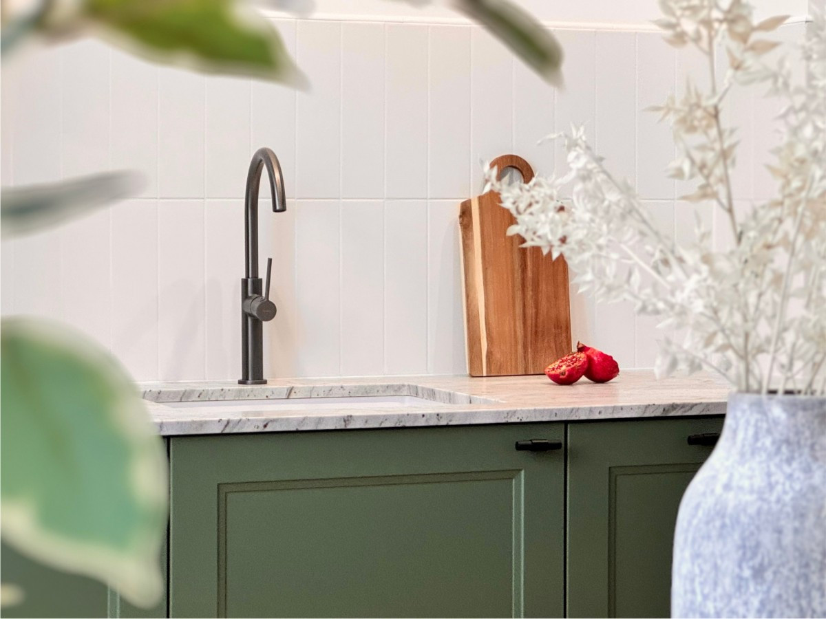 • stylowe wnętrze: beżowa kolorystyka, oliwkowozielona stolarka na wymiar, dębowy parkiet w klasyczną jodełkę,