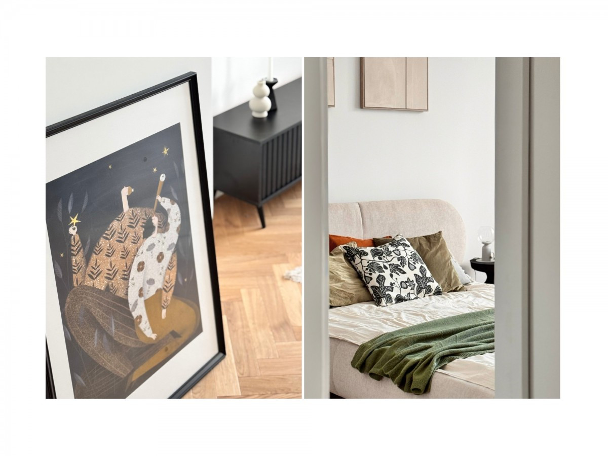 Już od wejścia uwagę zwraca elegancka zabudowa i jasna, spójna aranżacja. Salon z balkonem to przestrzeń do odpoczynku i spotkań, sypialnia z garderobą gwarantuje prywatność i porządek, a łazienka w stylu modern retro zachwyca detalami. Całość została wykonana w wysokim standardzie - m.in. z użyciem armatury Omnires.