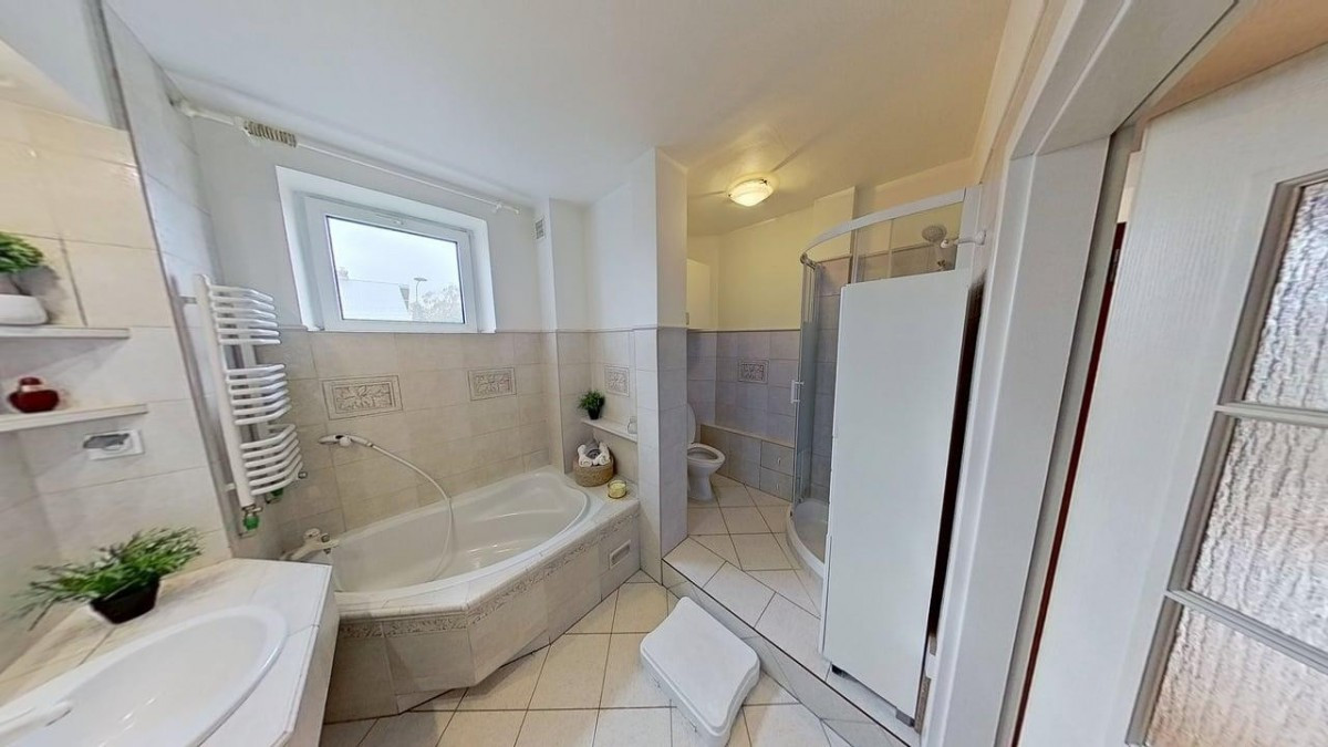 - przestronnej łazienki posiadającej zarówno wannę, jak i oddzielny prysznic,