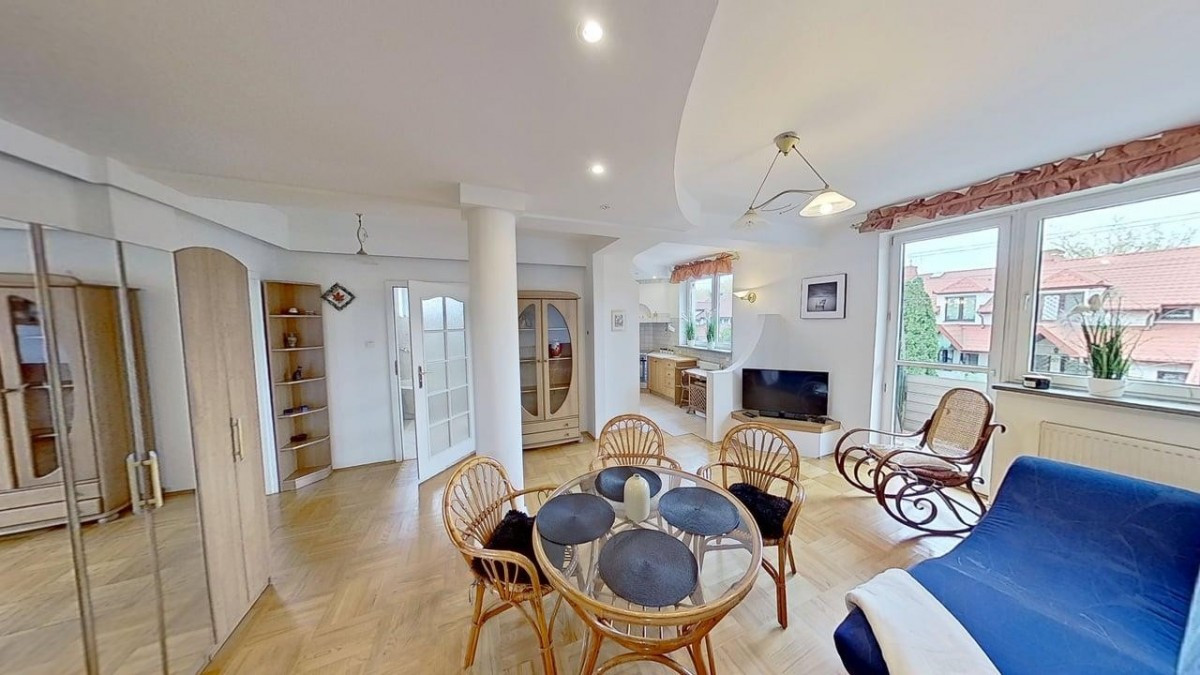 - przestronnego pokoju również z wyjściem na balkon (strona południowa),