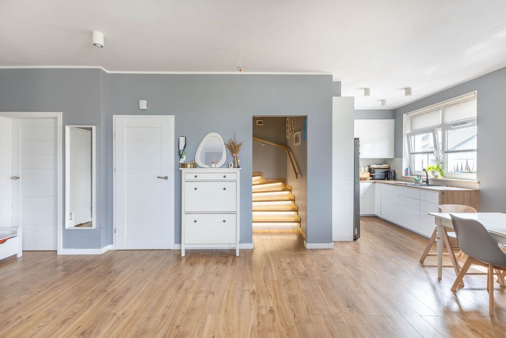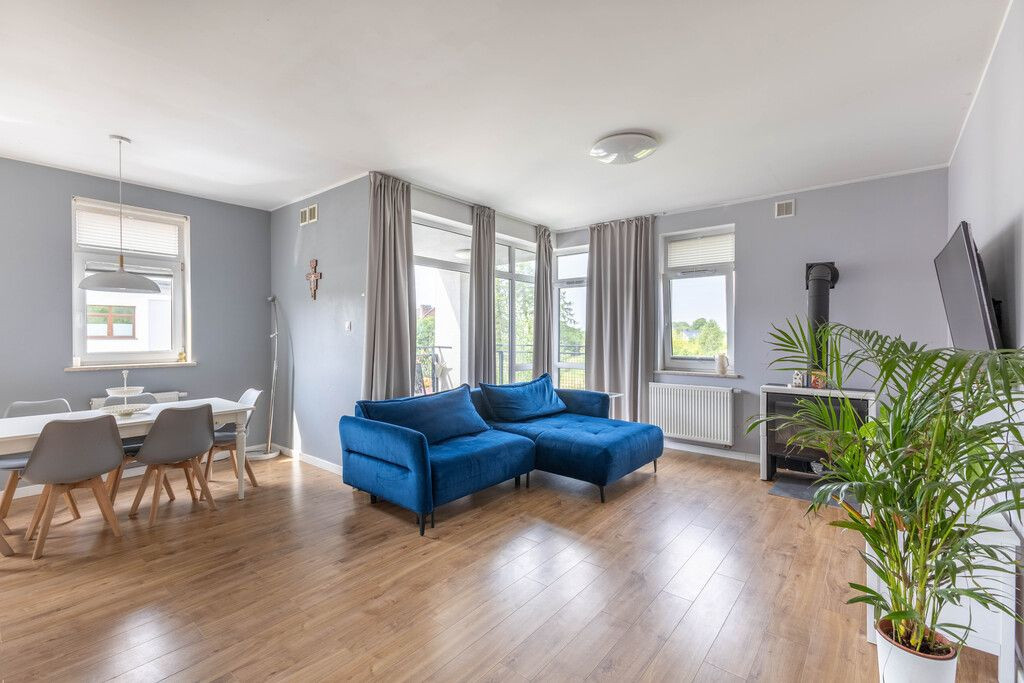 Na sprzedaż: Dwupoziomowe mieszkanie bezczynszowe w zabudowie szeregowej, w bardzo dobrym standardzie wyposażenia. Nieruchomość znajduje się w zielonej, bezpiecznej okolicy, na dobrze zagospodarowanym nowoczesnym oraz zamkniętym osiedlu na Warszawskim Ursynowie (Pyry), przy ulicy Sarabandy. Idealna propozycja dla rodziny lub jako inwestycja pod wynajem. 6 pokojowe, funkcjonalne mieszkanie o powierzchni użytkowej 120m2 znajduje się na pierwszym i drugim piętrze, w dwupiętrowym budynku bez windy z 2018r. Do mieszkania przynależą dwa miejsca postojowe usytuowane przed budynkiem. Zakup obligatoryjny. Dodatkowym atutem jest ogródek o powierzchni 114,3m2. Rozkład: Mieszkanie składa się z: PIĘTRA: -salonu 16m2 -otwartej kuchni 14,3m2 -dwóch sypialnie 13,6m2, 9,8m2 -holu 17,8m2 -łazienki 6,2m2 -balkonu 9,5m2 -ogródka 114,3m2 PODDASZA: -trzech sypialni 9,1m2, 9,1m2, 8,7m2 -łazienki i pralni 4,2m2, 5,1m2 -holu 8,1m2 Ekspozycja: Południowy Zachód Standard: Mieszkanie w bardzo dobrym standardzie do lekkiego odświeżenia. Nieruchomość cicha, jasna oraz funkcjonalna. W mieszkaniu na podłodze występują panele oraz gres, schody dębowe. W salonie i kuchni zastosowano ogrzewanie podłogowe. Dodatkowym atutem jest kominek umilające wieczory zimową porą. Ogrzewanie miejskie. Okna plastikowe. W cenie mieszkania występują meble w zabudowie stałej. Mieszkanie bezczynszowe. Media: Woda miejska, gaz miejski (piec Viessman), prąd, szambo. Komunikacja i zagospodarowanie przestrzenne: -przystanki autobusowe w pobliżu, najbliższy -550m – 7min pieszo -stacja PKP - 3km -Stacja Metra 5,8km -szkoła podstawowa 1,1km – 14min pieszo, przedszkole 1,1km – 15min pieszo -przychodnia, banki -liczne sklepy i usługi, restauracje -na terenie osiedla plac zabaw -parki i tereny rekreacyjne Stan prawny: Mieszkanie własnościowe. Jest Księga Wieczysta. Grunty uregulowane. Zapraszam do kontaktu.For sale: A two-story, rent-free apartment in a terraced house, furnished to a very high standard. The property is located in a green, safe neighborhood, in a well-developed, modern, gated community in Warsaw"s Ursynów district (Pyry), on Sarabandy Street. It"s an ideal option for a family or as a rental investment. A 6-room , functional apartment with a usable area of 120 m2 is located on the first and second floor in a two-story building without an elevator from 2018. The apartment comes with two parking spaces located in front of the building . Purchase is mandatory . An additional advantage is the 114.3m² garden. Schedule: The apartment consists of: FLOORS: -living room 16m2 -open kitchen 14.3 m2 -two bedrooms 13.6 m2, 9.8 m2 -hall 17.8 m2 -bathrooms 6.2 m2 -balcony 9.5 m2 -garden 114.3 m2 ATTIC: - three bedrooms 9.1 m2, 9.1 m2, 8.7 m2 - bathroom and laundry room 4.2 m2, 5.1 m2 -hall 8.1 m2 ATTIC: 75.65 m2 Exposure : Southwest Standard: The apartment is in a very good standard, requiring minor renovation. The property is quiet, bright, and functional. The flooring is laminate and stoneware, and the stairs are oak. The living room and kitchen have underfloor heating. A fireplace is an added bonus, perfect for cozy winter evenings. District heating is provided. The windows are PVC. The price includes built-in furniture. Rent-free apartment. Utilities: City water, city gas (Viessman furnace), electricity, septic tank. Communication and spatial development : - bus stops nearby, the nearest one - 550m – 7 minutes on foot - railway station - 3km -Metro Station 5.8km - primary school 1.1 km – 14 min walk, kindergarten 1.1 km – 15 min walk -clinic, banks -numerous shops and services, restaurants - playground on the estate -parks and recreational areas Legal status: Owner-occupied apartment. Land and mortgage register available. Land and mortgage regulations in place. Please feel free to contact me.