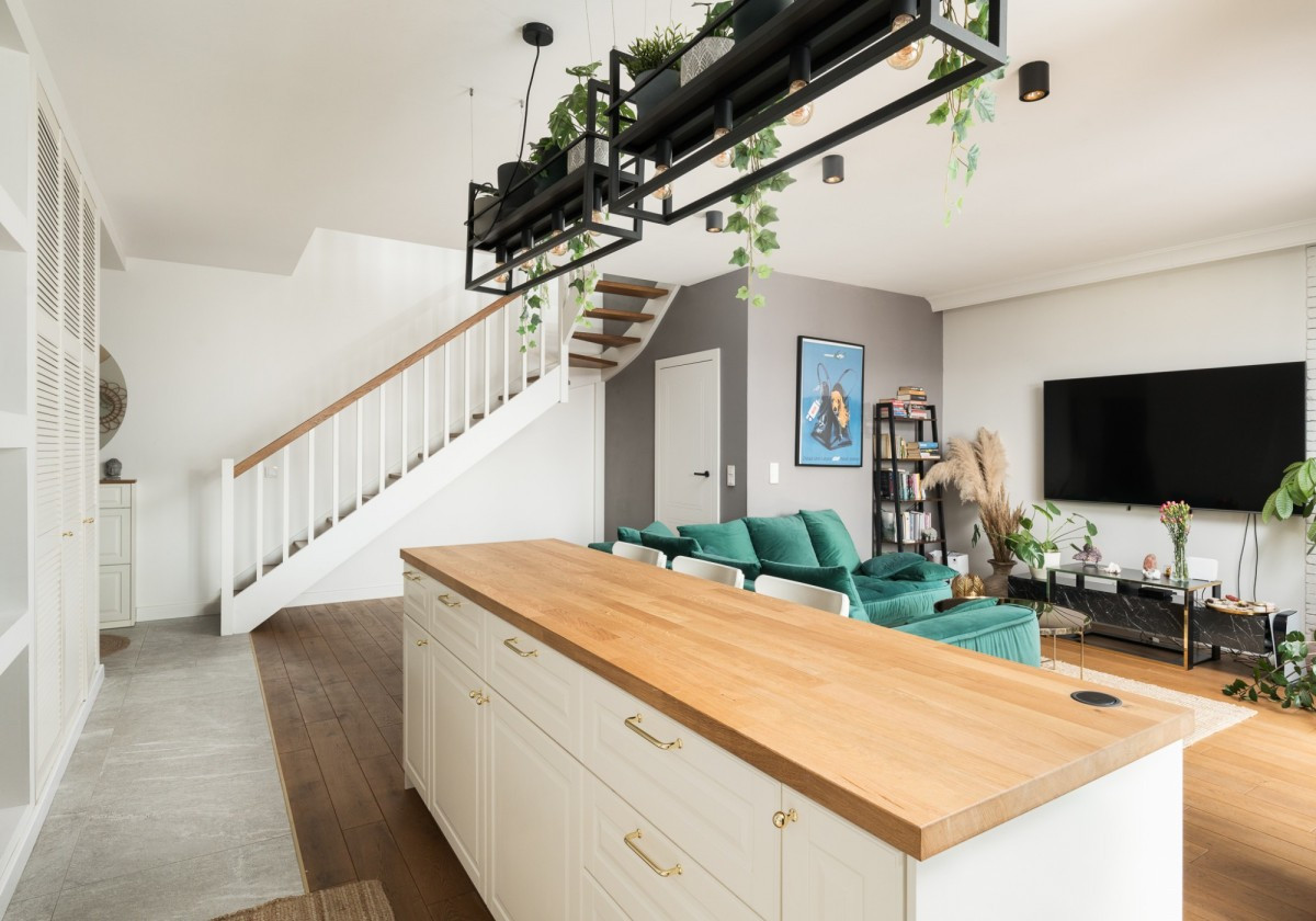 Apartament znajduje się na 4 i piątym piętrze budynku z 2019 roku. Lokal został wykończony z najwyższą starannością materiałami wysokiej jakości.