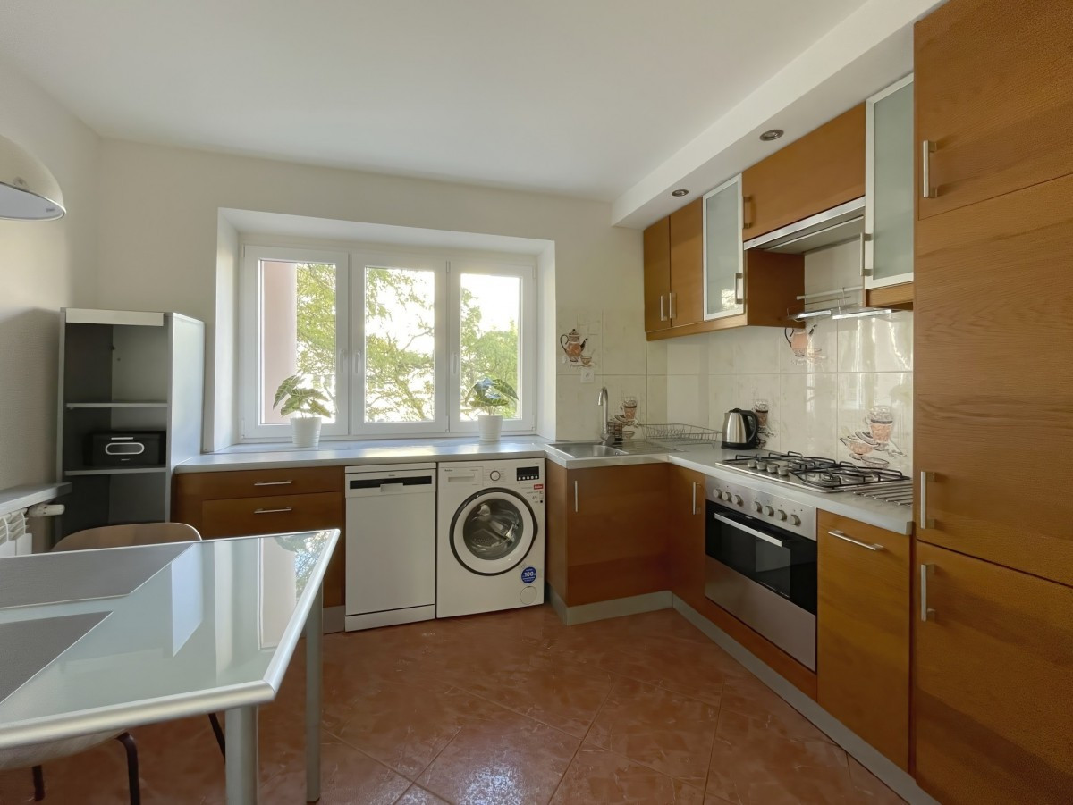 Mieszkanie składa się z przestronnego salonu, sypialni, oddzielnej kuchni oraz łazienki z kabiną prysznicową. Wnętrze jest ciepłe i przytulne, co sprawia, że od razu można poczuć się tu jak w domu. Kuchnia i łazienka w pełni funkcjonalne i gotowe do użytku.