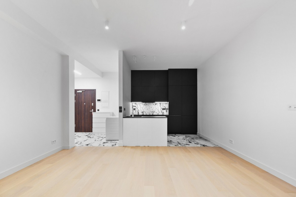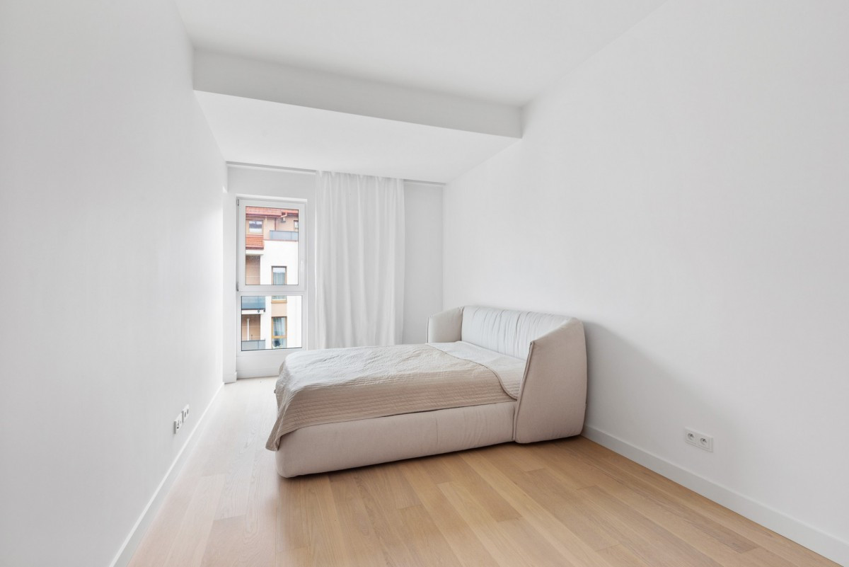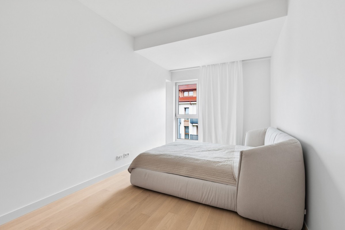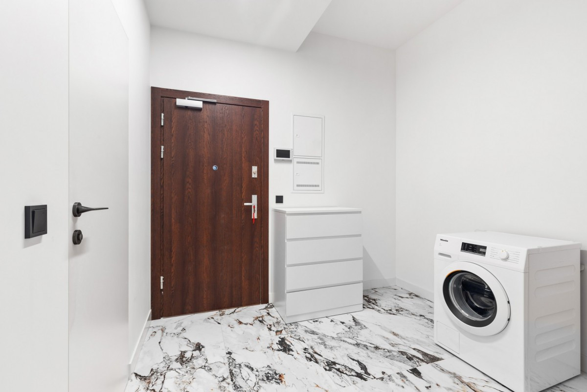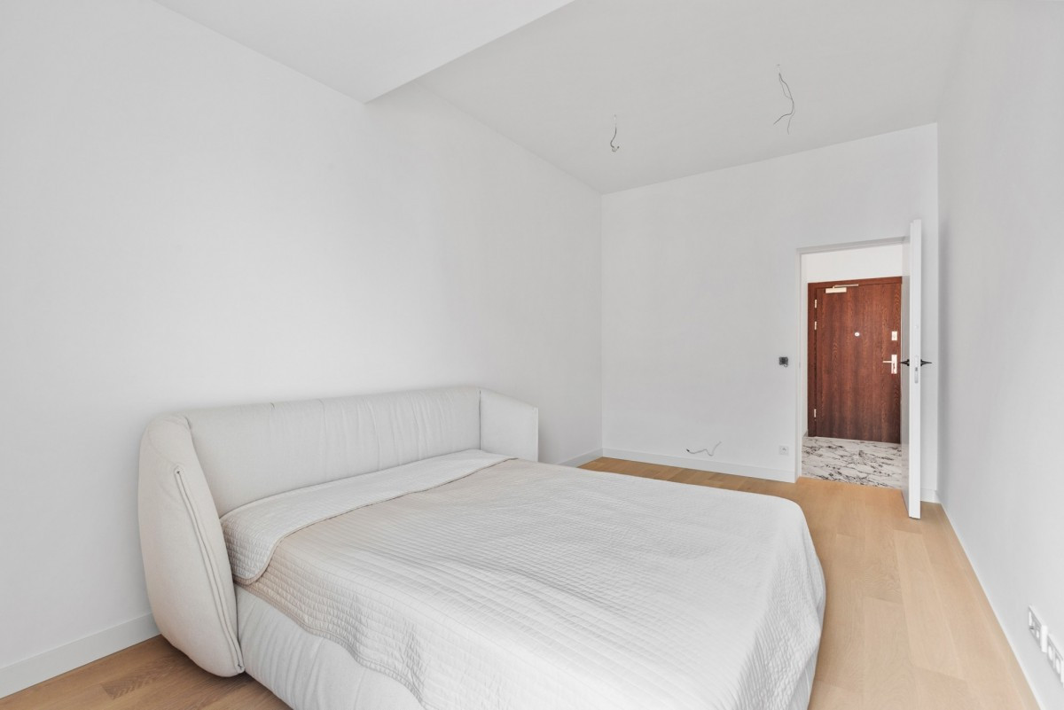 całe mieszkanie zostało urządzone z wykorzystaniem materiałów premium - naturalnych, trwałych i ponadczasowych. Drewniany parkiet, ukryte drzwi oraz doskonałej jakości armatura, oświetlenie i AGD nadają wnętrzu wyjątkowego charakteru.