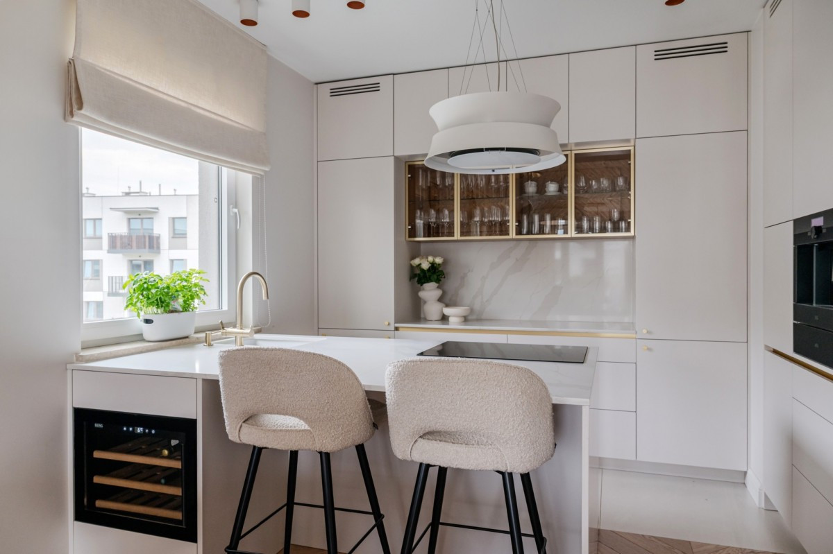 • Kuchnia z marmurowymi blatami i wysokiej klasy sprzętem AGD (AEG, Liebherr, Faber, ekspres do kawy w zabudowie, winiarka, filtr wody, młynek)