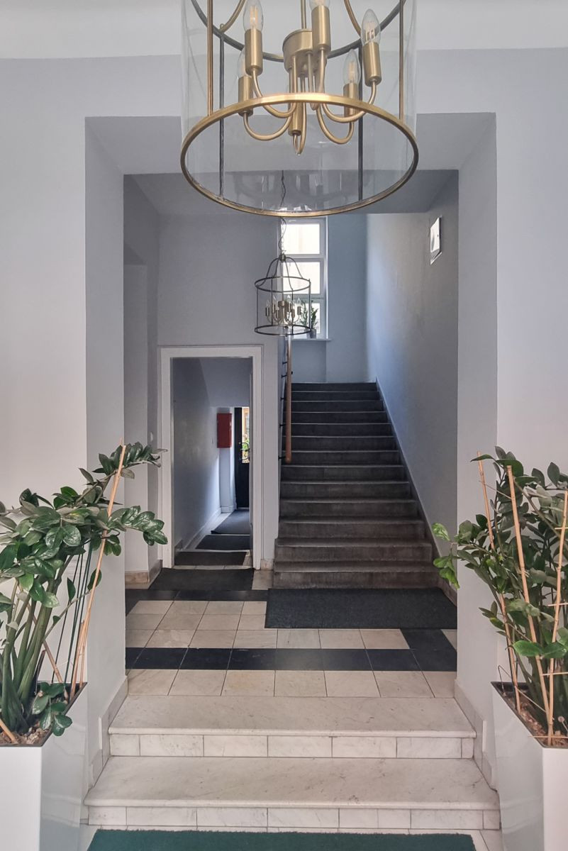 Kamienica, w której mieści się lokal, zachwyca reprezentacyjną klatką schodową i wyjątkową architekturą. To budynek z charakterem — położony w tętniącym życiem centrum, w otoczeniu klimatycznych kawiarni, restauracji i butików.