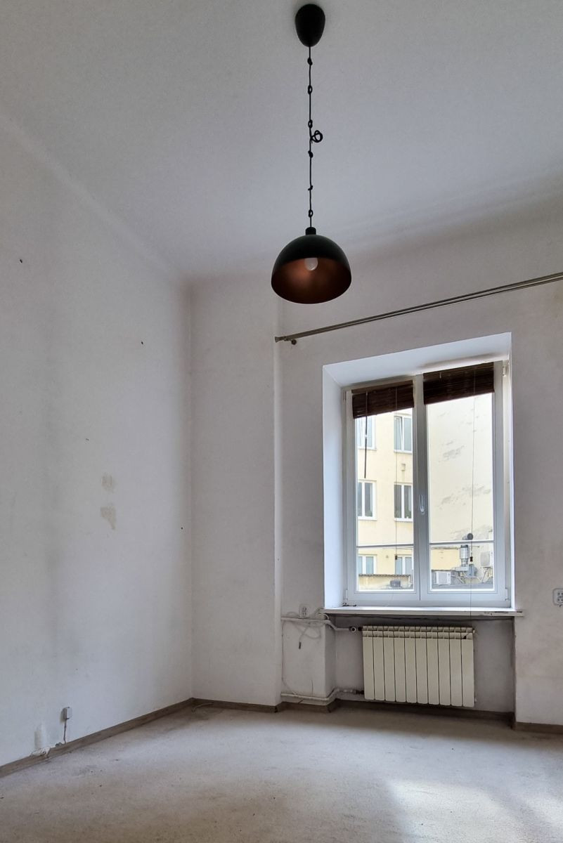 Lokal o powierzchni niespełna 26m2 znajduje się na pierwszym piętrze do którego wejdziemy wygodnymi schodami. Jego okna wychodzą na spokojne wewnętrzne patio od strony południowej gdzie znajdują się również lokale użytkowe. Poczucie przestrzeni potęguje wysokość mieszkania która wynosi około 350cm. Mieszkanie ma duży potencjał - można stworzyć tu funkcjonalną, komfortową przestrzeń pod wynajem lub dla siebie. Bardzo ciekawa propozycja na siedzibę firmy. Prestiżowy adres, zadbana kamienica i funkcjonalny układ sprzyjają prowadzeniu dochodowego biznesu. W ofercie zobrazowany jest zoptymalizowany układ mieszkania obrazujący jego przykładowy potencjał aranżacyjny: dwa pokoje. Stan: do generalnego remontu.