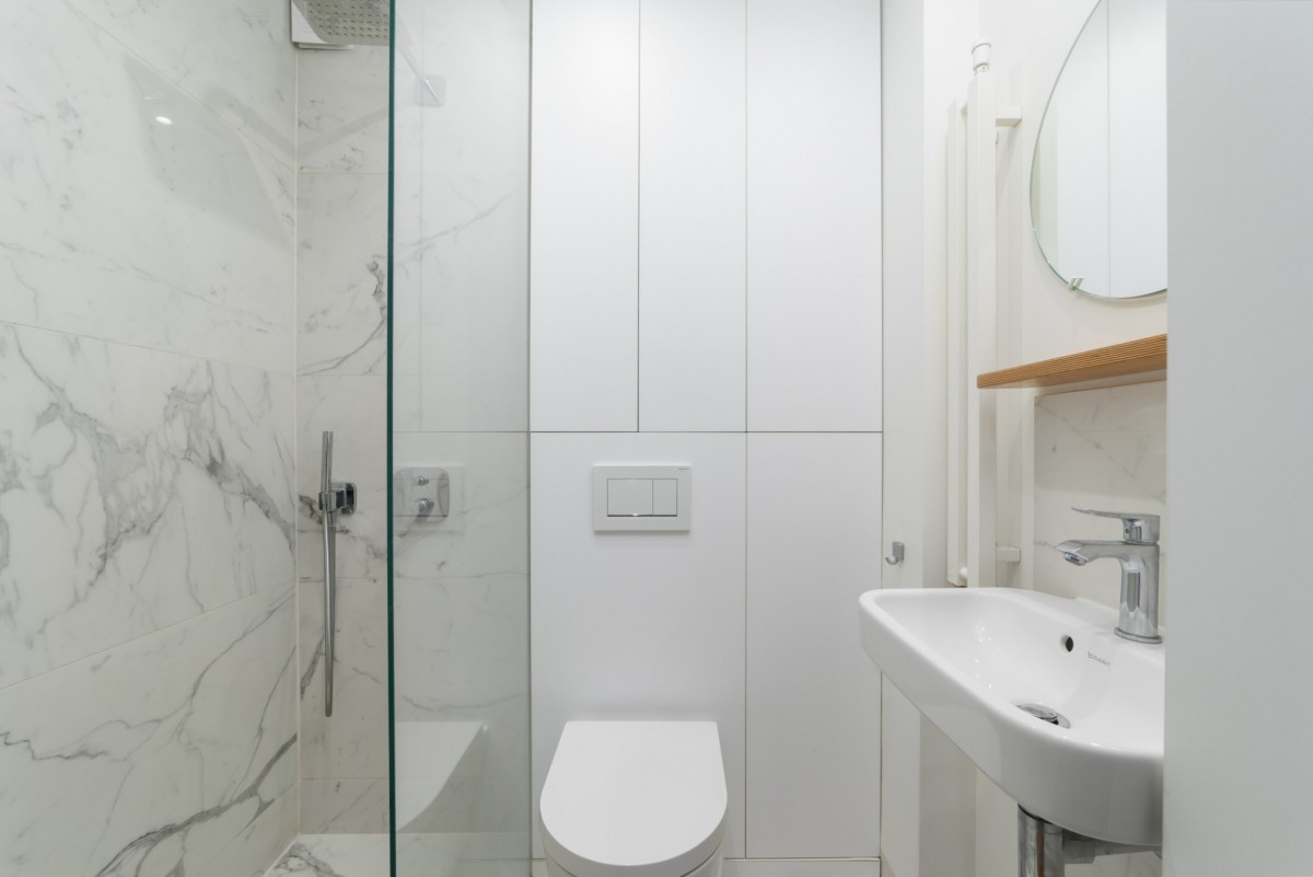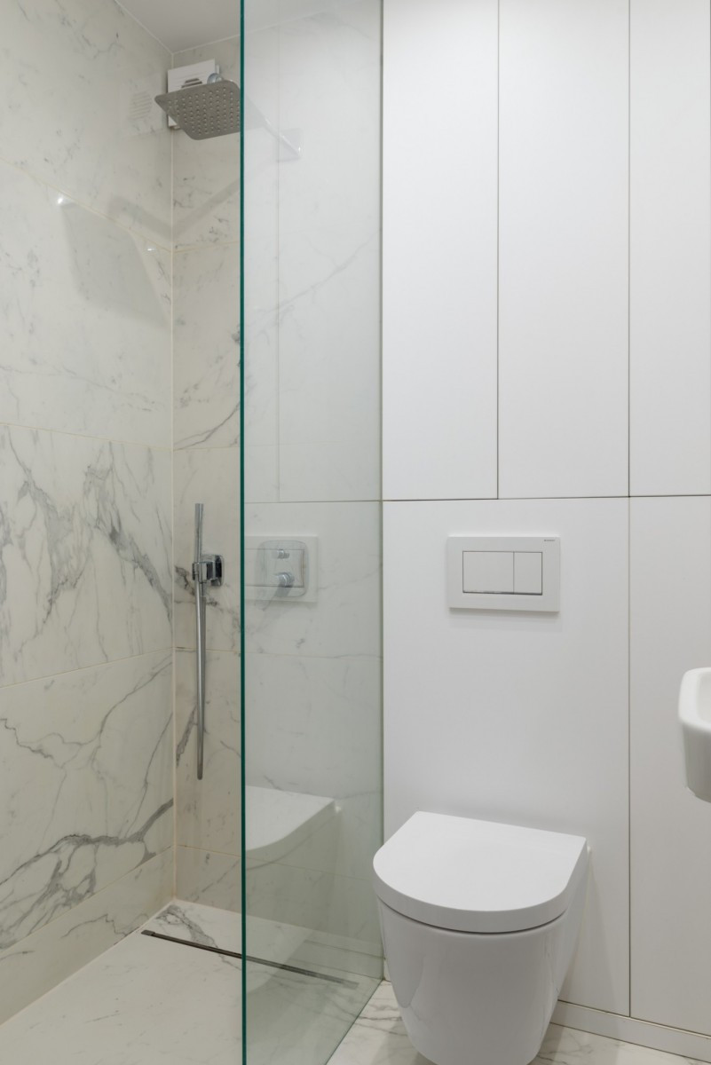 - łazienki wyposażonej w nowoczesny prysznic typu walk-in,