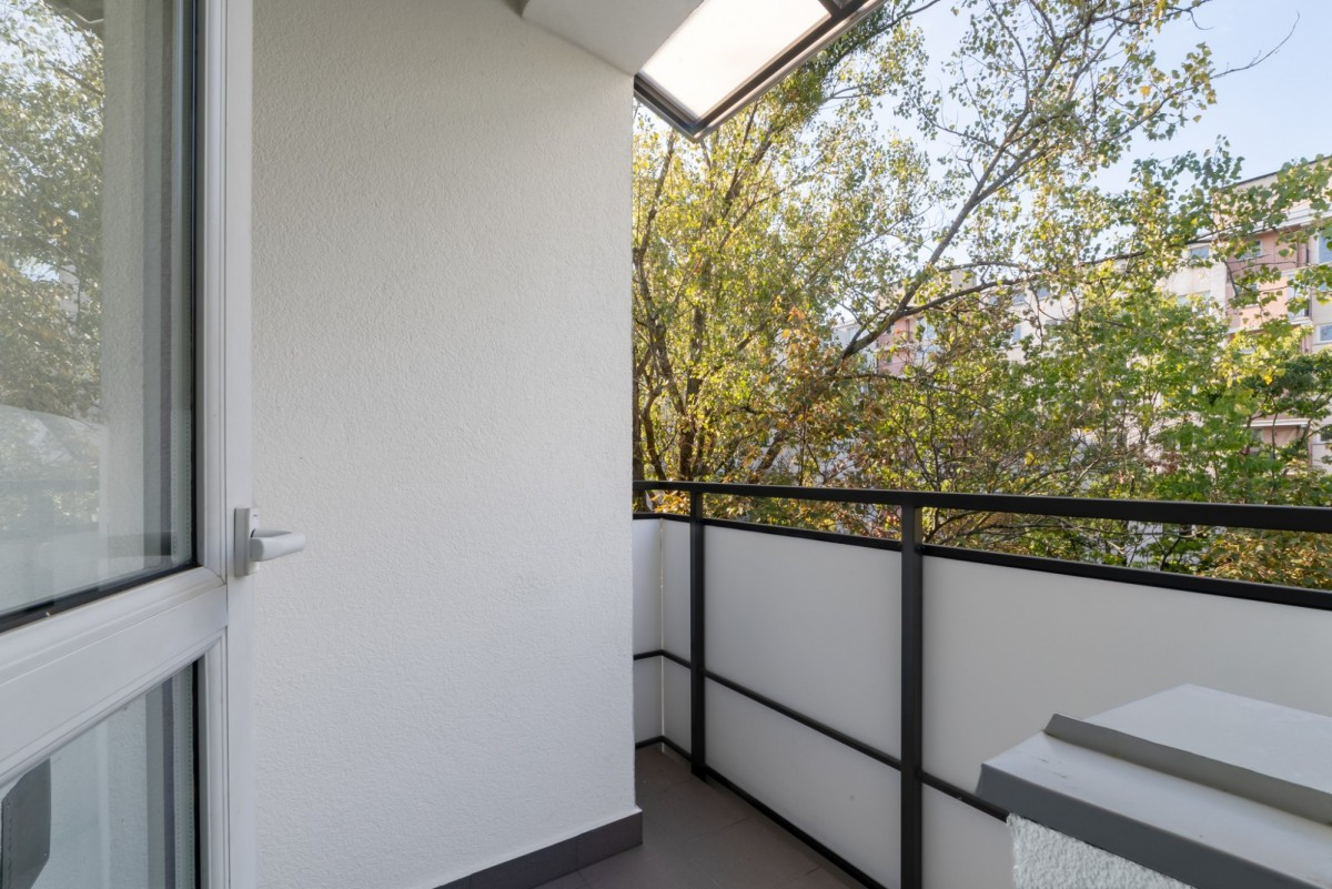 Dzięki ekspozycji okien na dwie strony świata wnętrze jest dobrze doświetlone o każdej porze dnia. Sypialnia znajduje się po stronie wschodniej, co pozwala cieszyć się porannym światłem, natomiast salon z aneksem kuchennym i balkonem wychodzi na stronę zachodnią, zapewniając przyjemne popołudniowe i wieczorne słońce.
