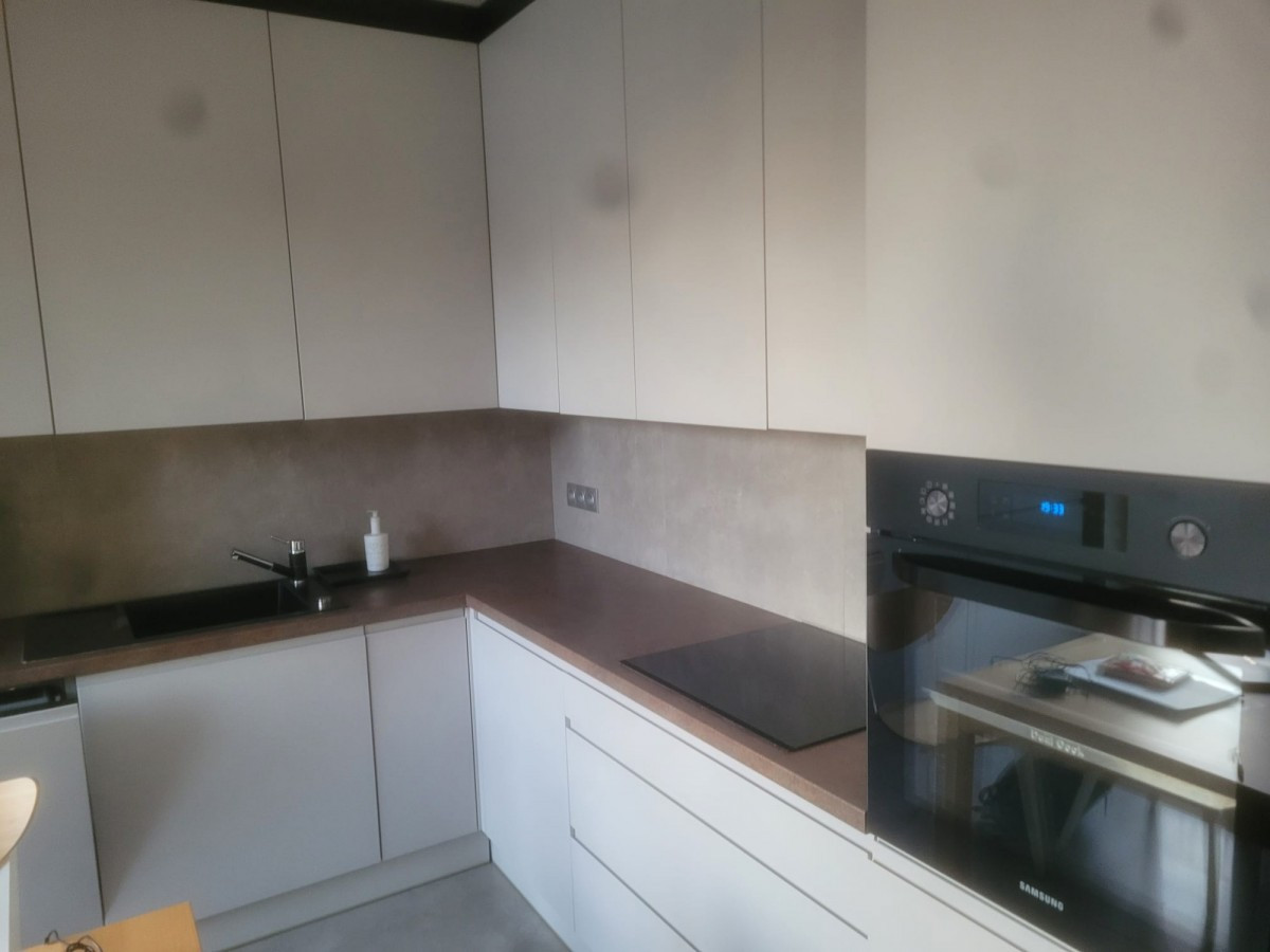 Salon z aneksem kuchennym i wyjściem na taras.Dwie sypialnie (lub sypialnia i gabinet/pokój dziecka).Łazienka (z wanną, prysznicem i najwyższej klasy ceramiką).Oddzielna, zabudowana garderoba z oświetleniem.Przestronny przedpokój.Kuchnia i Łazienka zostały wykonane na indywidualne zamówienie i zaprojektowane przez architekta. Zastosowano płytki Tubądzin z kolekcji Maciej Zień przedstawiające mapę Paryża oraz armaturę i ceramikę premium (Massi, GROHE, Omnires). W aneksie kuchennym znajduje się pełen zestaw markowego AGD oraz trwały zlewozmywak FRANKE (z 15-letnią gwarancją).