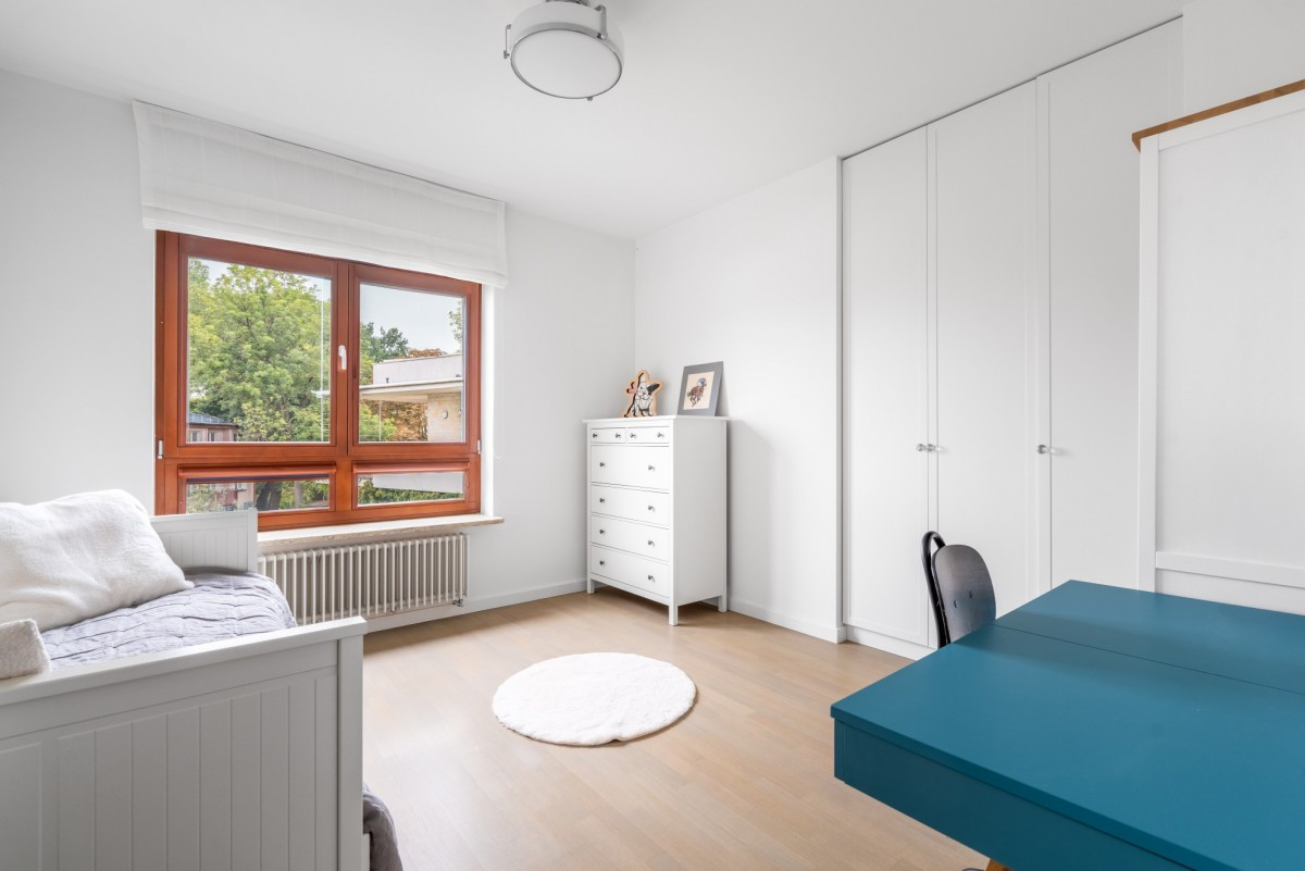 Prezentowana nieruchomość ma powierzchnię 118,18 mkw. i znajduje się w spokojnej części Saskiej Kępy, nieopodal ulicy Paryskiej i Francuskiej.