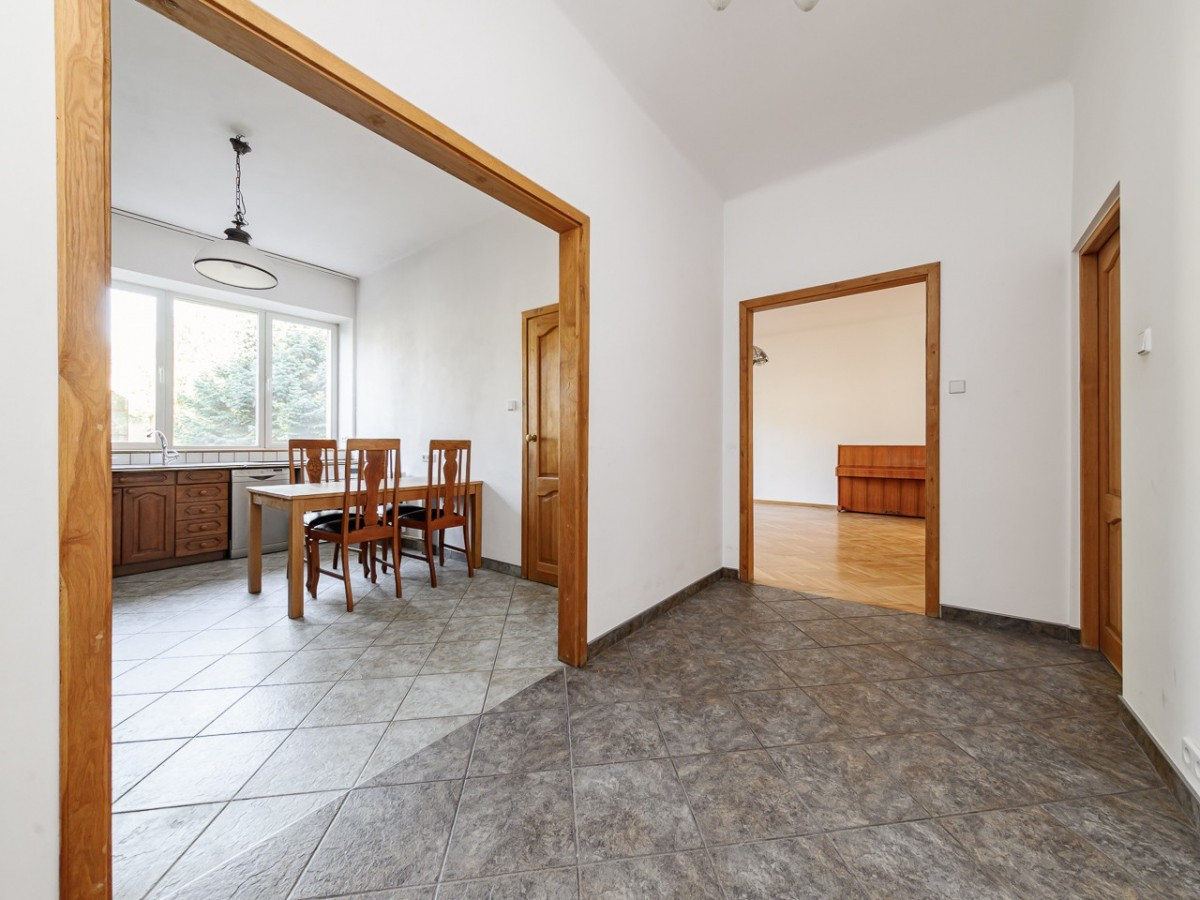 The presented property is a spacious flat with an area of approx. 80 m², located on the first floor of an intimate, three-storey tenement house.