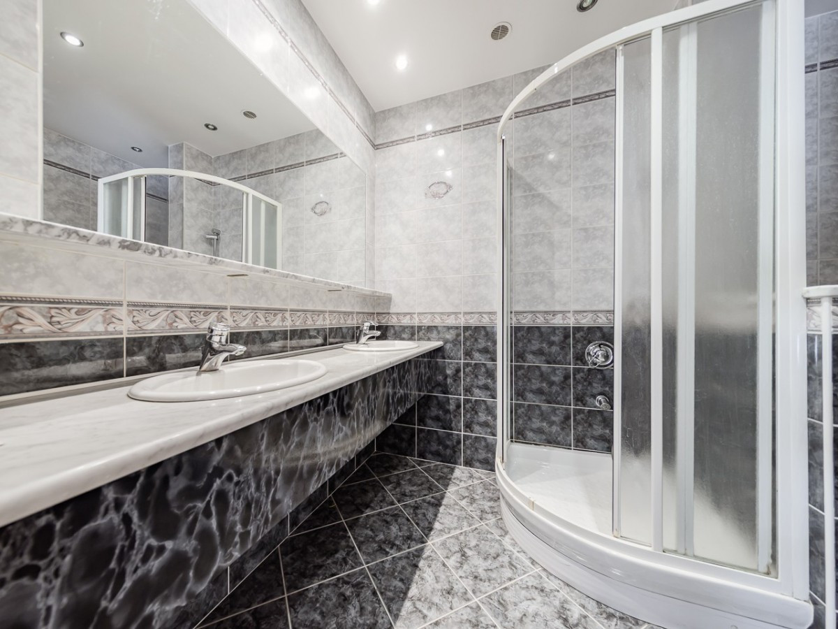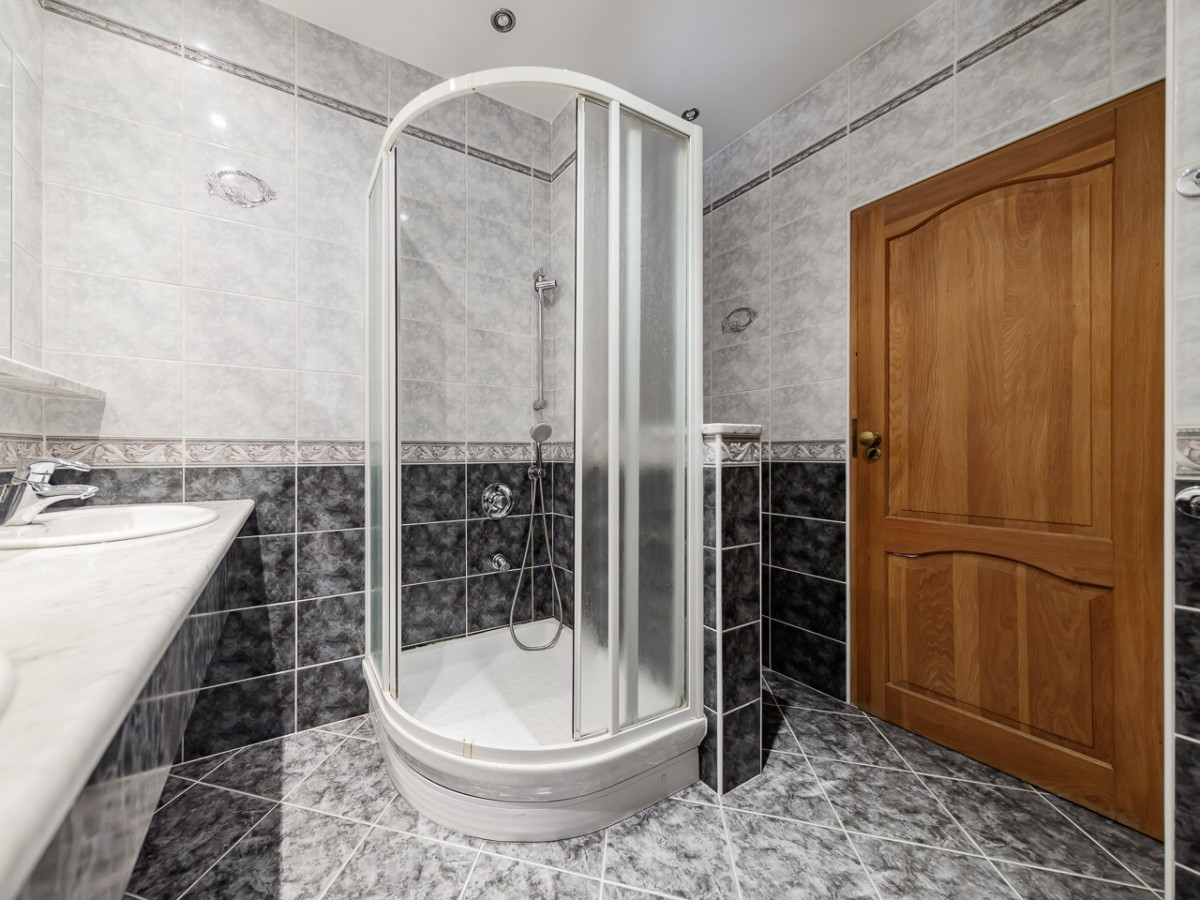 a bathroom with a shower cubicle,