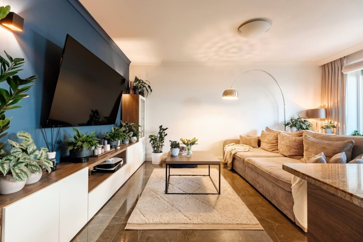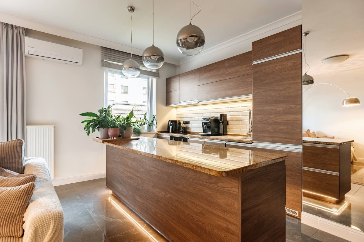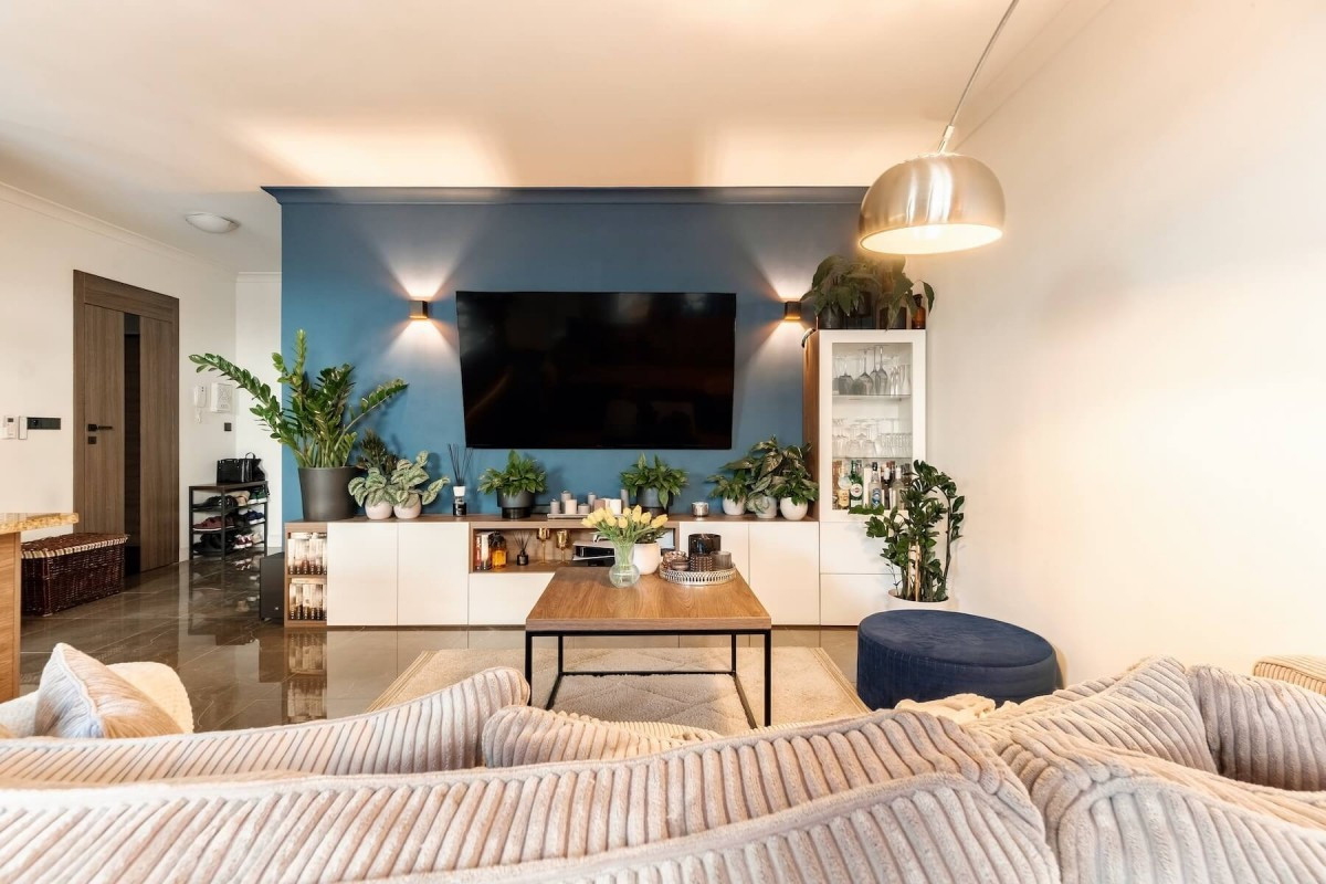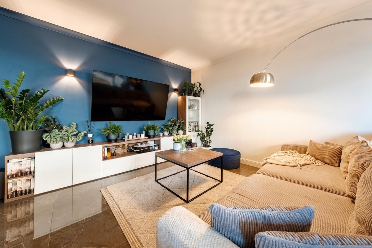Mieszkanie jest gotowe do wprowadzenia się i urządzone w nowoczesnym stylu.