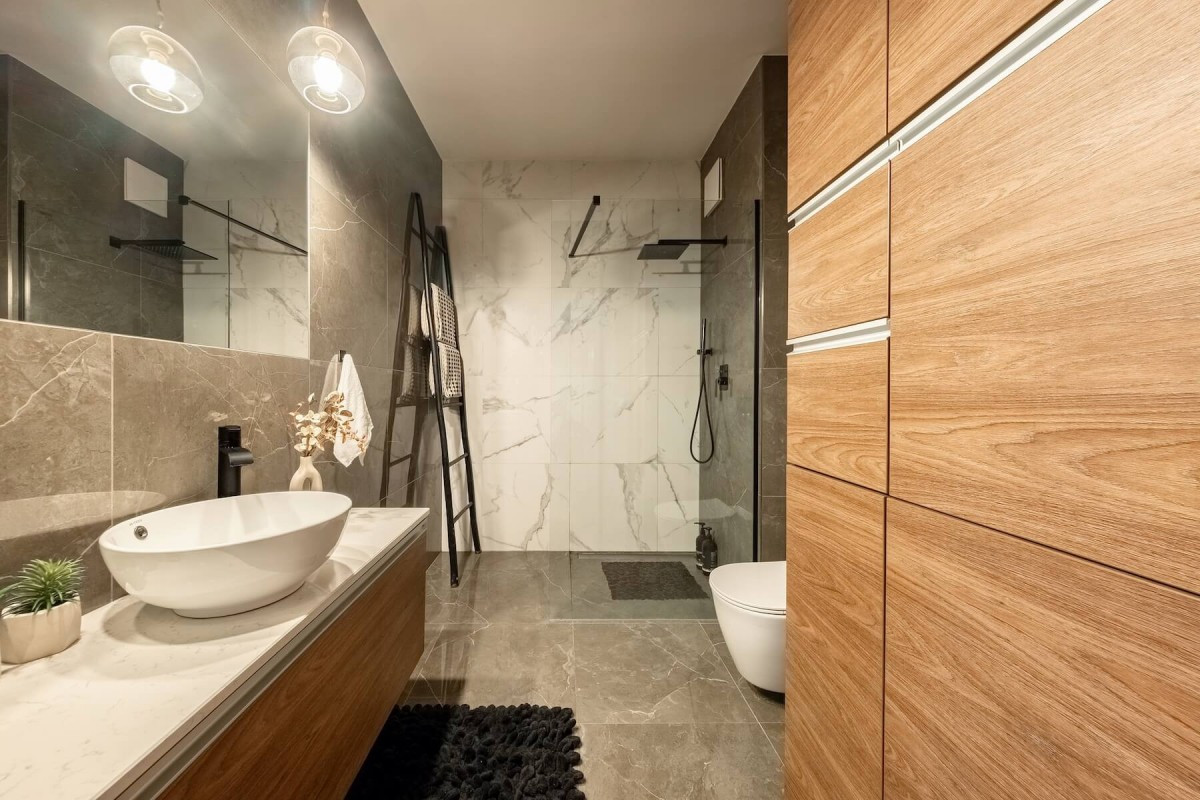 Łazienka w pełni wyposażona, wykończona wysokiej jakości materiałami