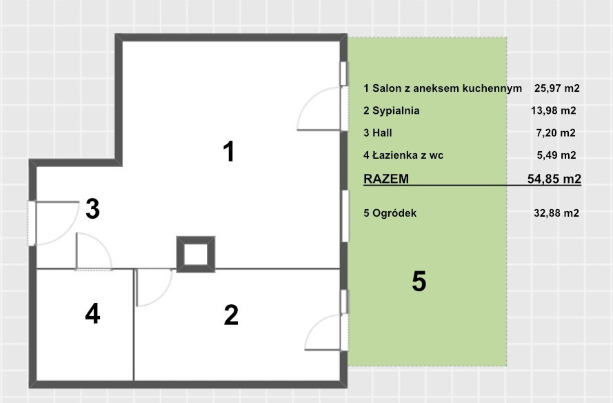 Powierzchnia: 54,85 m² + ogródek 32,88 m²