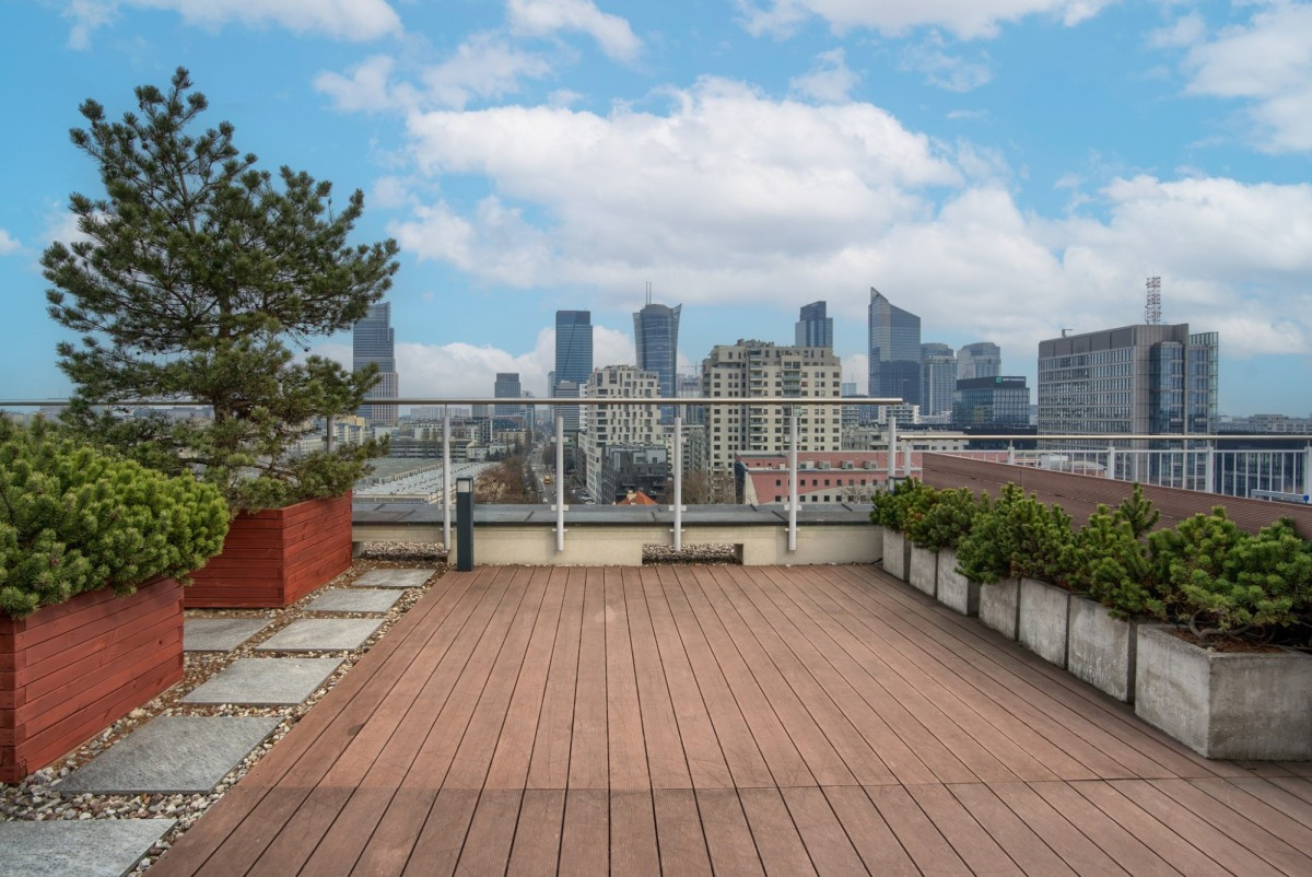 Prywatny, duży taras z widokiem na zadbany ogród - rzadko spotykana przestrzeń w centrum miasta, idealna do pracy zdalnej, medytacji czy wieczornego wina pod gołym niebem