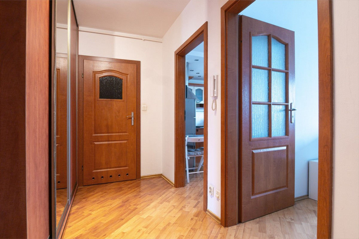The apartment has excellent public transport thanks to bus stops located near the building. The housing estate has public parking spaces available, there is no problem with parking.
