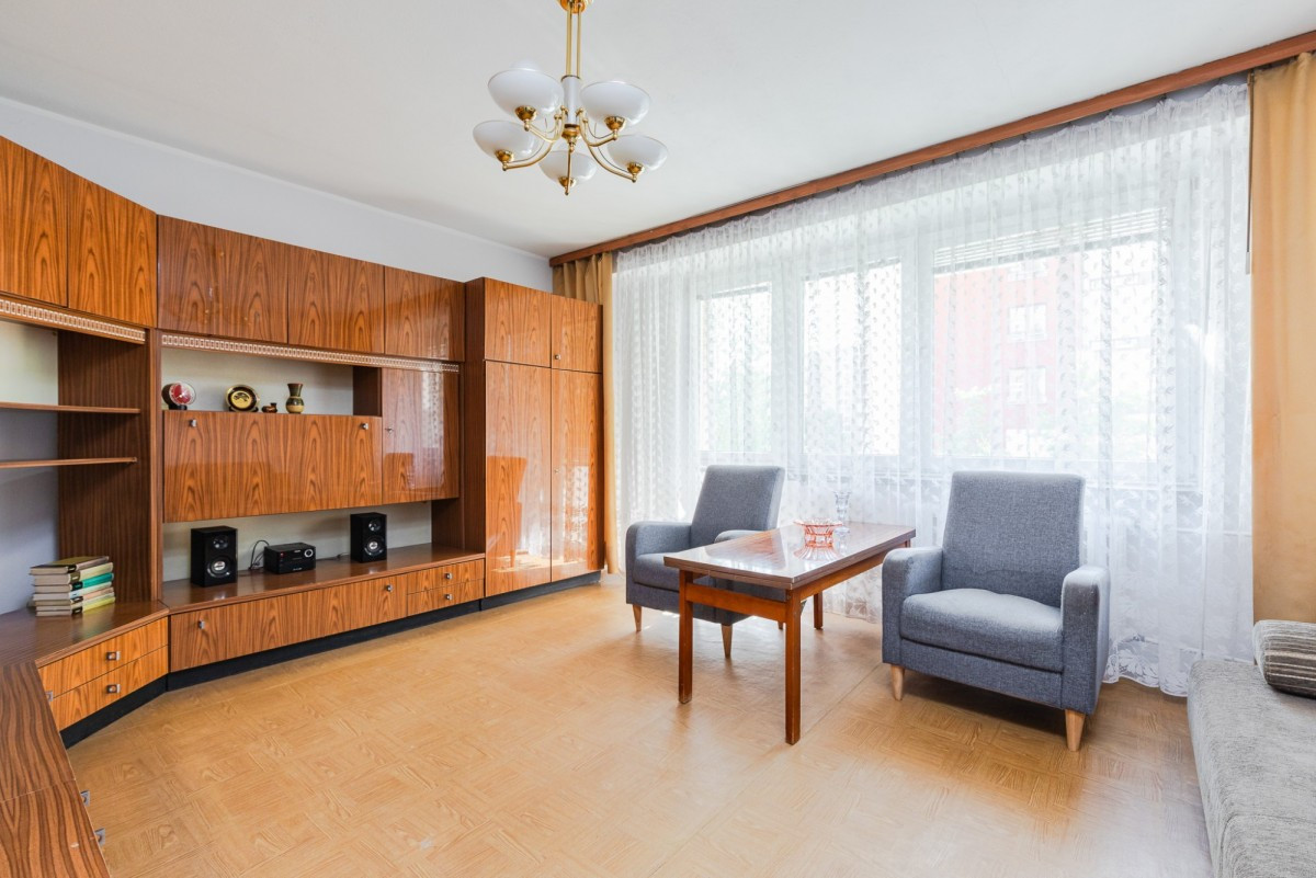 Mieszkanie wymaga remontu, jednak funkcjonalny układ pozwala stworzyć wnętrze dopasowane do indywidualnych potrzeb - od otwartej strefy dziennej po osobny kącik do pracy.