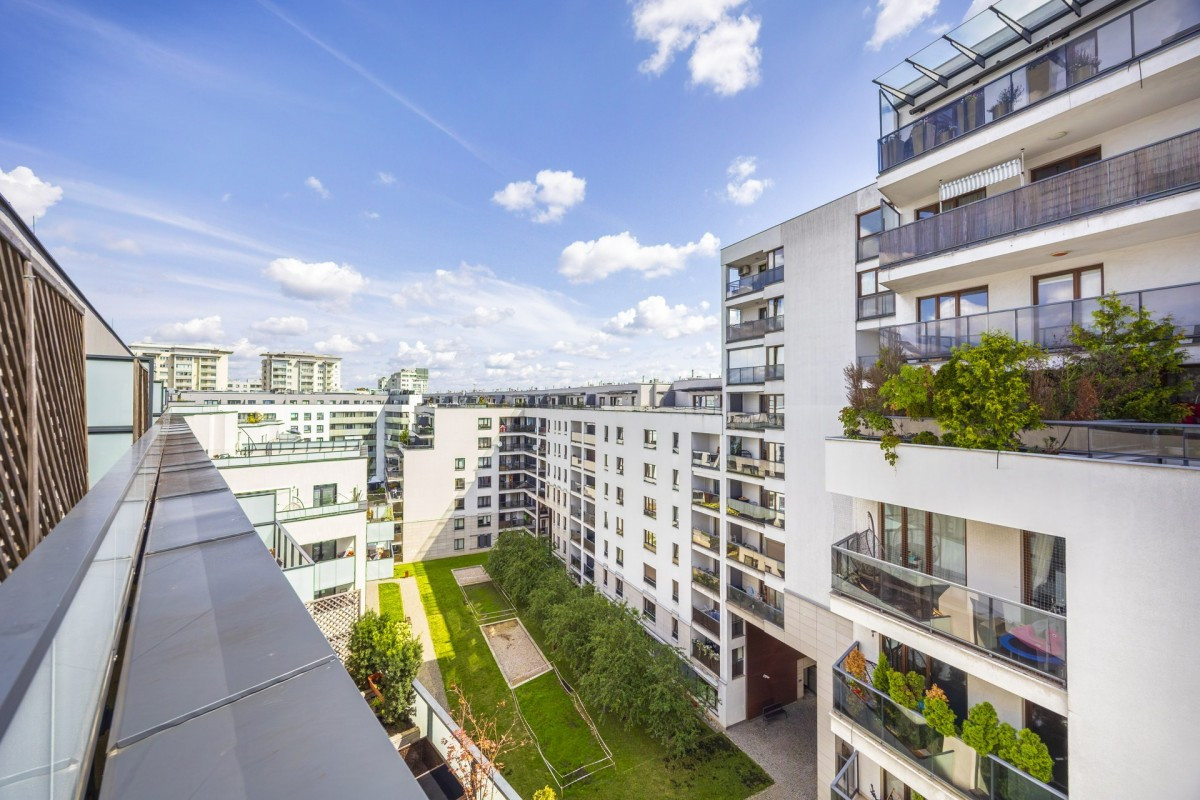 Apartament położony jest w cichej i zielonej części Mokotowa - Stegny. W pobliżu znajdują się liczne udogodnienia: sklepy, restauracje, kawiarnie, przedszkola i szkoły (w tym szkoły brytyjska i francuska). Bliskość Parku Arkadia i Parku Dolinka Służewiecka zachęca do aktywnego spędzania czasu na świeżym powietrzu. W okolicy znajdują się również ośrodki sportowe (Stegny, Warszawianka) oraz centra handlowe (Galeria Mokotów, Sadyba Best Mall).