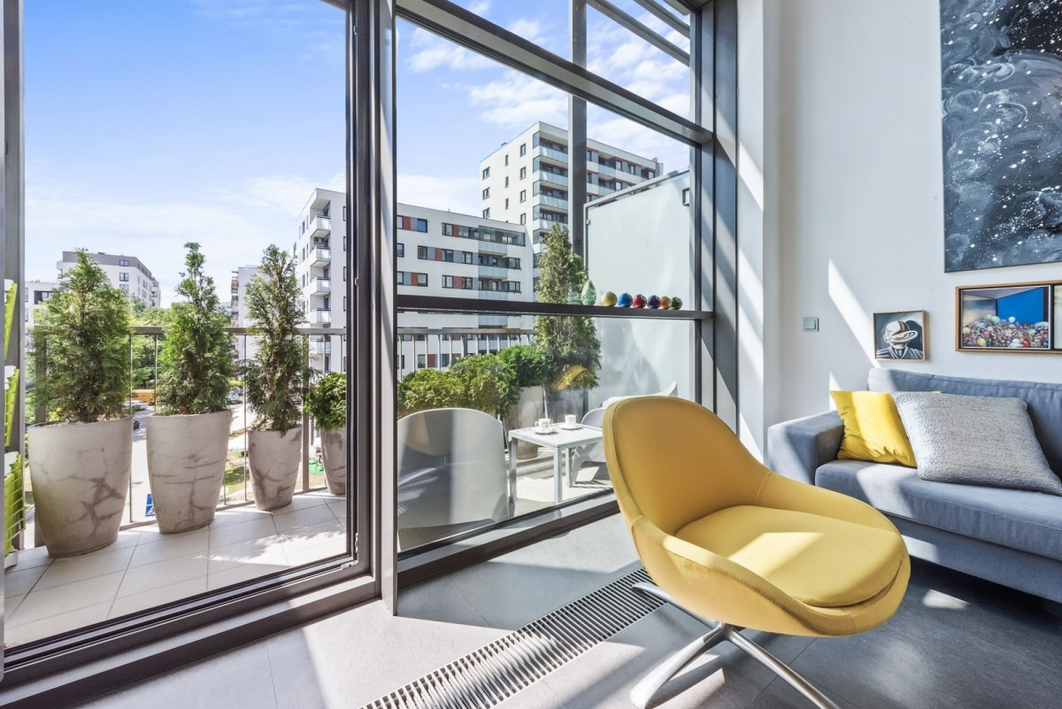 Doskonale nasłonecznione mieszkanie i wykończone w wysokim standardzie. Jasne wnętrza okraszone śmiałymi kolorystycznie detalami Drewniana podłoga na antresoli dodaje przytulności nowoczesnym wnętrzom. W kuchni zastosowano sprzęt w zabudowie znanych marek.