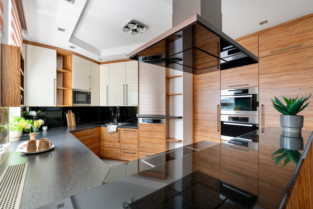 Sprzęt AGD i RTV: pralka, suszarka, dwa piekarniki, lodówka z zamrażarką, dodatkowa zamrażarka, zmywarka, płyta indukcyjna, okap, lodówka na wino, telewizor