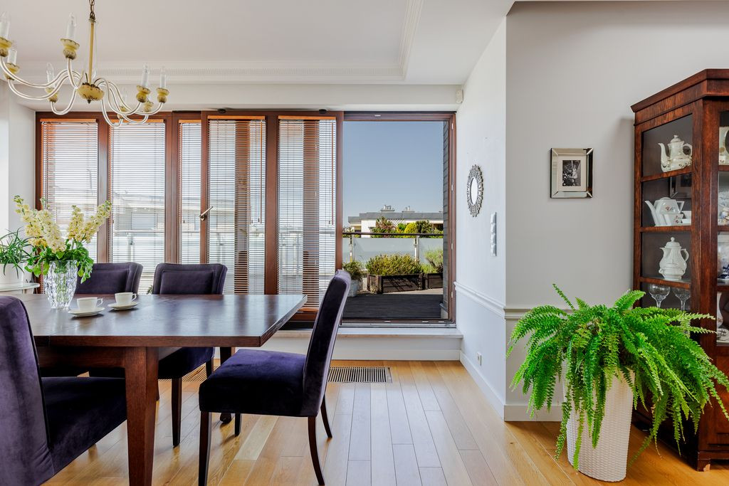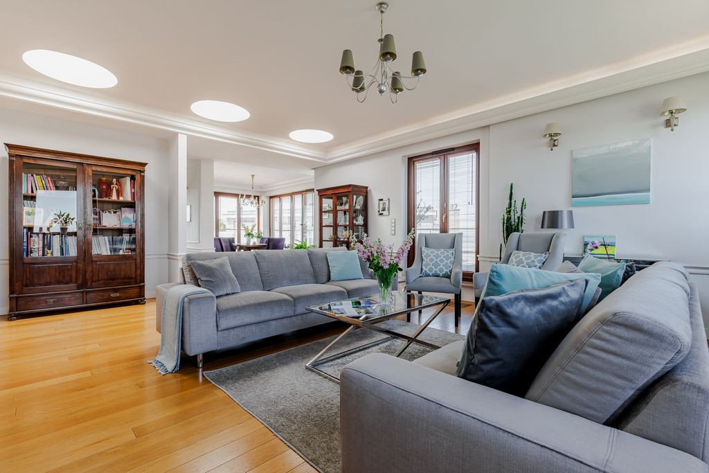 Przestronny, komfortowy Penthouse z pięcioma pokojami i prywatną windą prowadzącą bezpośrednio do apartamentu, zlokalizowany w prestiżowej części Miasteczka Wilanów. Budynek oraz wnętrza zostały wykończone w wysokim standardzie, oferując funkcjonalny układ pomieszczeń. Dodatkowym atutem są tarasy o imponującej łącznej powierzchni 122 m², które zapewniają wyjątkowy, panoramiczny widok.Całkowita powierzchnia Penthouse wynosi 194 m², a jego układ obejmuje: - Elegancki salon z wyjściem na przestronny taras o powierzchni 73 m². - Komfortową kuchnię z wyspą, w pełni wyposażoną w wysokiej klasy sprzęt AGD. -Jadalnię z dużym stołem, idealną do rodzinnych posiłków. -Przestronną sypialnię z prywatną łazienką (prysznic) oraz dużą garderobą. -Drugą sypialnię, obecnie pełniącą funkcję gabinetu, z wyjściem na drugi taras. -Toaletę gościnną. -Oddzieloną strefę nocną, w której znajdują się dwie sypialnie (aktualnie pokoje dziecięce), każda z garderobą, dodatkowa łazienka z wanną oraz pomieszczenie gospodarcze z pralnią. - Przestronny hol z klimatycznymi świetlikami, dodającymi uroku wnętrzu.Z każdego pokoju można wyjść na otaczające Apartament tarasy, co zapewnia wyjątkowe poczucie przestrzeni.Do Apartamentu przynależą: - Dwa miejsca postojowe (standardowe oraz na platformie) oraz komórka lokatorska o powierzchni 5,67 m², łączna cena: 120 000 zł.Możliwość przejęcia najmu trzeciego miejsca postojowego (stacjonarnego).BUDYNEK:Penthouse znajduje się na 4. piętrze Apartamentowca z 2008 roku. Budynek wyróżnia się wysokim standardem wykończenia oraz zadbanymi częściami wspólnymi (patio, plac zabaw).Wyjątkowym atutem jest panoramiczny widok na Miasteczko Wilanów i w oddali na centrum Warszawy. O bezpieczeństwo mieszkańców dba monitoring oraz ochrona.LOKALIZACJA:Nieruchomość położona jest w sercu Miasteczka Wilanów, w sąsiedztwie Osi Królewskiej. W okolicy znajdują się:Liczne sklepy, supermarkety, kawiarnie, restauracje oraz przychodnia zdrowia, dla osób aktywnych kluby fitness . W niedalekiej odległości Pałac w Wilanowie, idealne miejsce na relaks i spacery. Budynek jest dobrze skomunikowany, w pobliżu przystanek autobusowy. W okolicy znajduje się wiele szkół i przedszkoli, w tym międzynarodowych, co czyni to miejsce doskonałym dla rodzin z dziećmi.