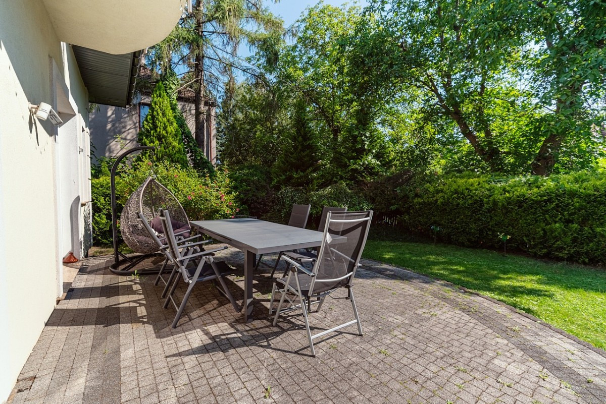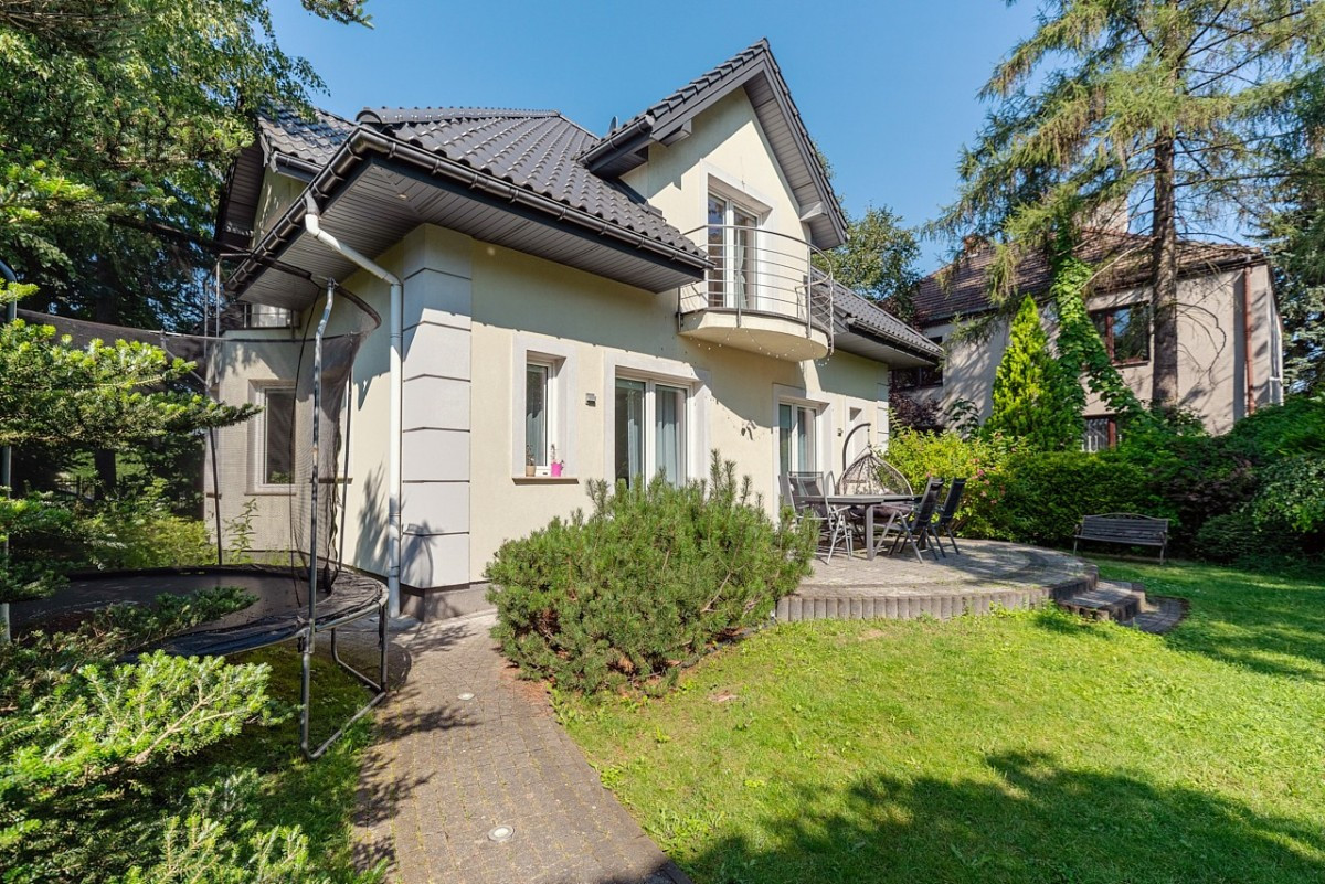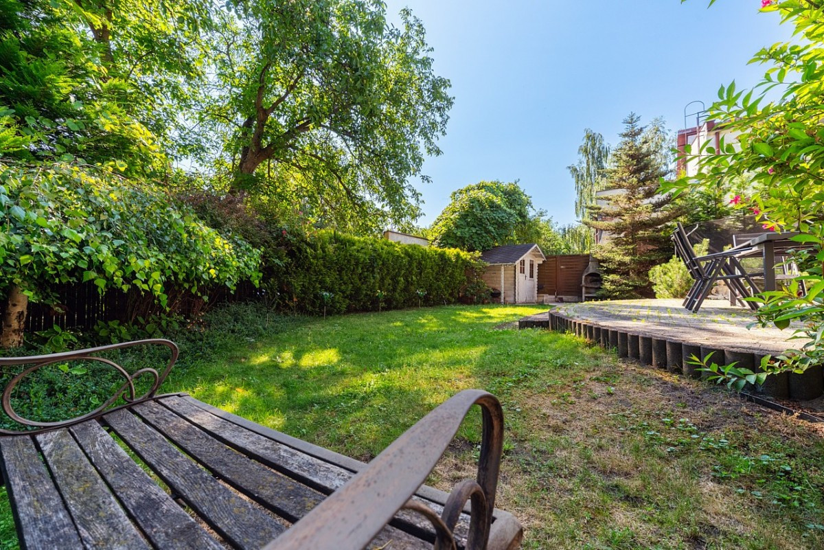 Dom otoczony jest zadbanym ogrodem ze starodrzewiem. W ogrodzie znajduje się piękny 30-metrowy taras. W ogrodzie został zamontowany system automatycznego podlewania trawnika.