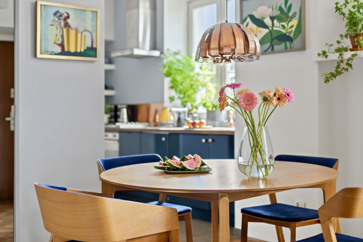 Mieszkanie znajduje się na Placu Inwalidów, na ostatnim, 4. piętrze kamienicy z 1930-1931 roku. Ma 2 pokoje i powierzchnię 64,3m². Lokal składa się z przedpokoju, półotwartej kuchni, salonu i bardzo przestronnej sypialni.