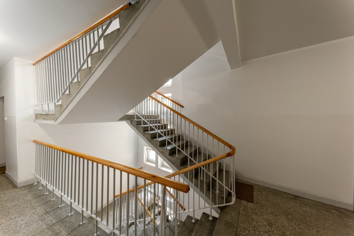 Mieszkanie znajduje się na 3. piętrze w zadbanej kamienicy, na zamkniętym osiedlu z wejściem przez furtkę na chip. Okna wychodzą na spokojne, zielone podwórze - cisza gwarantowana mimo centralnej lokalizacji.