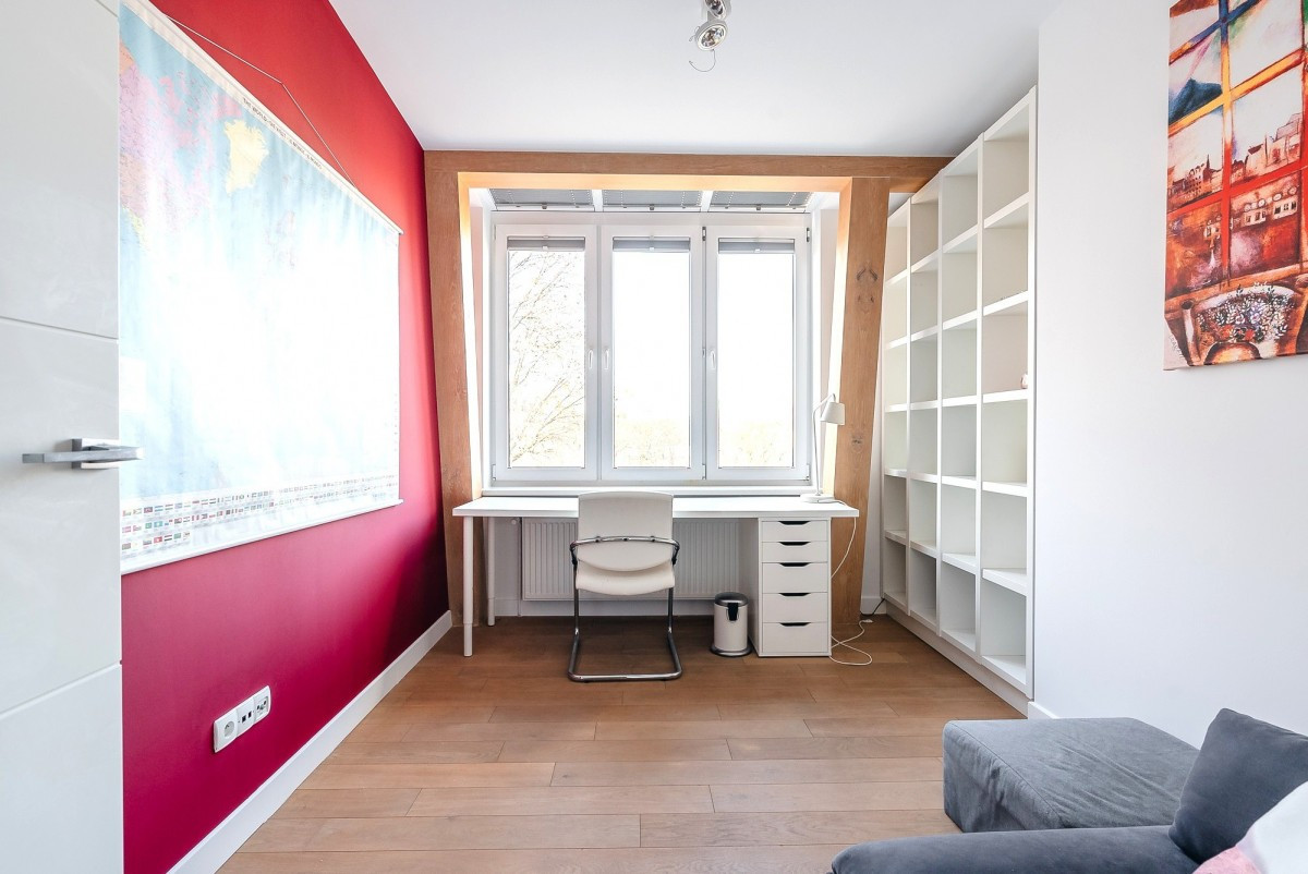 Dzięki dużej liczbie okien, jest bardzo dobrze doświetlony (m.in. okna dachowe)