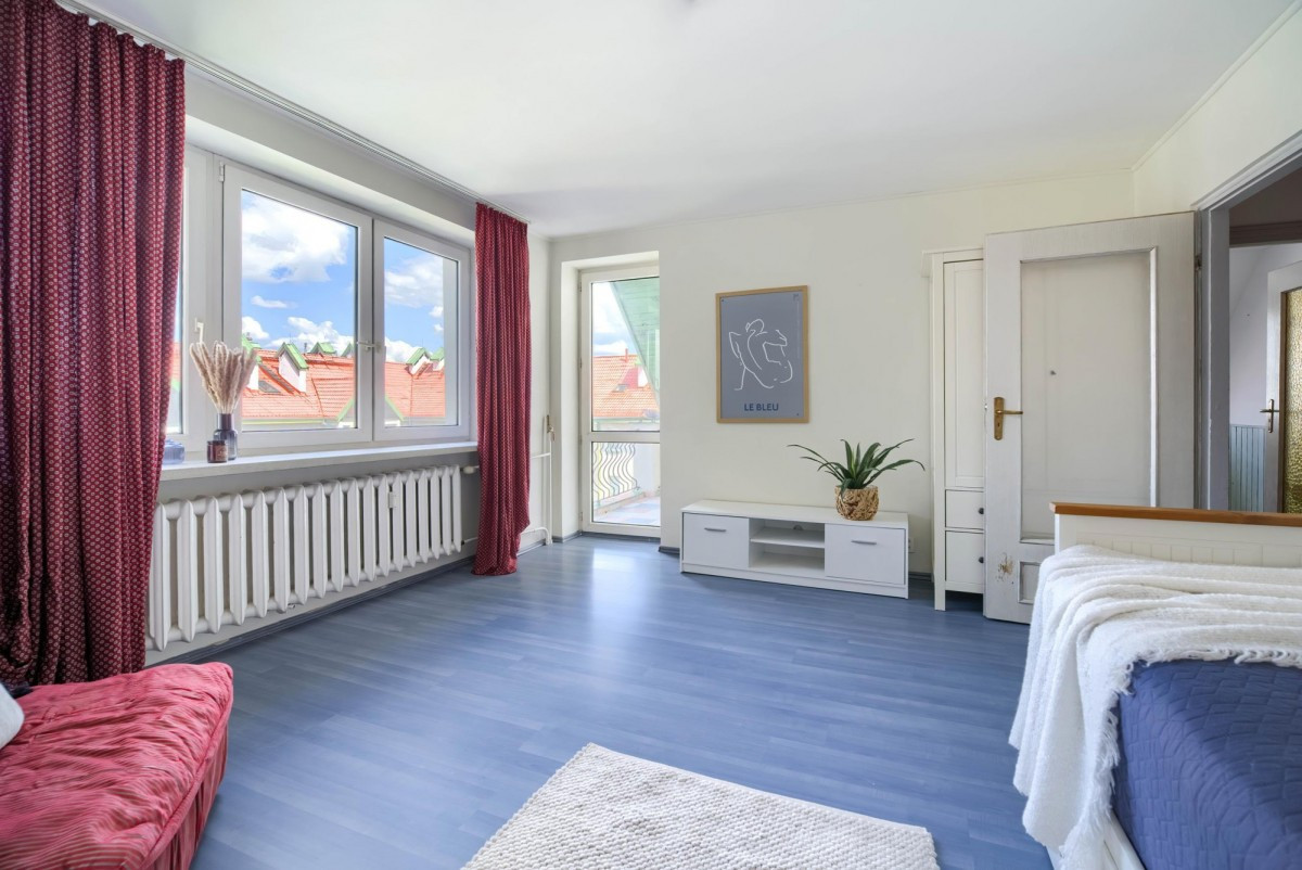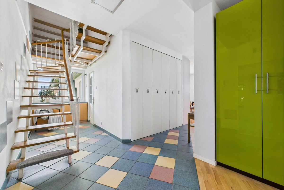 Dwa balkony, garderoba, dużo przestrzeni i możliwość funkcjonalnego podziału na dwa niezależne mieszkania (wejścia z klatki na obu poziomach!).