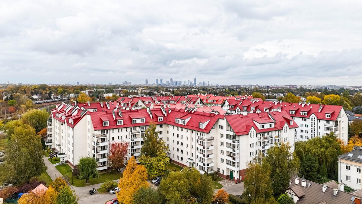 Spokojna, zielona okolica z dobrą komunikacją - dojazd do centrum Warszawy zajmuje ok. 15 minut.