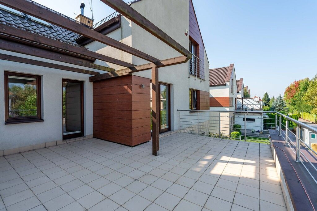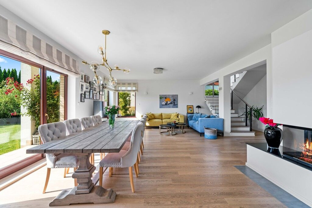 Z przyjemnością oferuję Państwu na sprzedaż funkcjonalny dom w zabudowie bliźniaczej, zlokalizowany w prestiżowej i spokojnej części Wilanowa, na Zawadach. Prezentowana nieruchomość ma 344 m2 i składa się z 8 pokoi. Budynek posadowiony jest na działce o powierzchni 612 m2. Jednym z jego największych atutów jest lokalizacja. Położony jest blisko pl. Vogla z łatwym dostępem do infrastruktury i komunikacji miejskiej. Zaprojektowany został z myślą o dużej rodzinie, tak aby dać jej komfort codziennego życia. Układ funkcjonalny uwzględnia dużą przestrzeń dzienną do wspólnego spędzania czasu, przestrzeń sypialnianą z przestronnymi pomieszczeniami oraz otwartą przestrzeń rekreacyjną, którą można zaadaptować według własnych potrzeb. Największe atuty:- świetna lokalizacja – w samym sercu Zawad- bardzo zadbany ogród z systemem automatycznego nawadniania- bardzo funkcjonalny układ pomieszczeń- bardzo dobrze doświetlone wnętrze- wysokość pomieszczeń: 2,80m- dwa tarasy- duży dwustanowiskowy garaż- dwa dodatkowe miejsca parkingowe na podjeździe Parter:- przestronny salon z kominkiem połączony z jadalnią i kuchnią- spiżarnia- toaleta- gabinet / pokój gościnny- taras (15m2) z wyjściem zarówno z kuchni jak i salonu- hall- pomieszczenie gospodarcze- dwustanowiskowy garaż Piętro 1:- sypialnia master połączona z łazienką i garderobą- 3 dodatkowe sypialnie- łazienka- pralnia- taras (30m2) oraz balkon (15 m2) Piętro 2:- otwarta, pięknie doświetlona przestrzeń (56 m2)- łazienka- pokój Lokalizacja:Dom znajduje się w centralnej części Zawad, na kameralnym, zamkniętym osiedlu z bardzo zadbaną częścią wspólną. W zasięgu kilku kroków, do dyspozycji mieszkańców jest bardzo dobrze rozwinięta infrastruktura usługowa, ale także tereny zielone. Bliskość Rezerwatu Natura 2000, plaży Zawady oraz liczne ścieżki rowerowe pozwalają na aktywny tryb życia. W okolicy są korty tenisowe, klub sportowy oraz renomowane placówki edukacyjne.To idealne miejsce do zamieszkania. Zapraszam na prezentację.