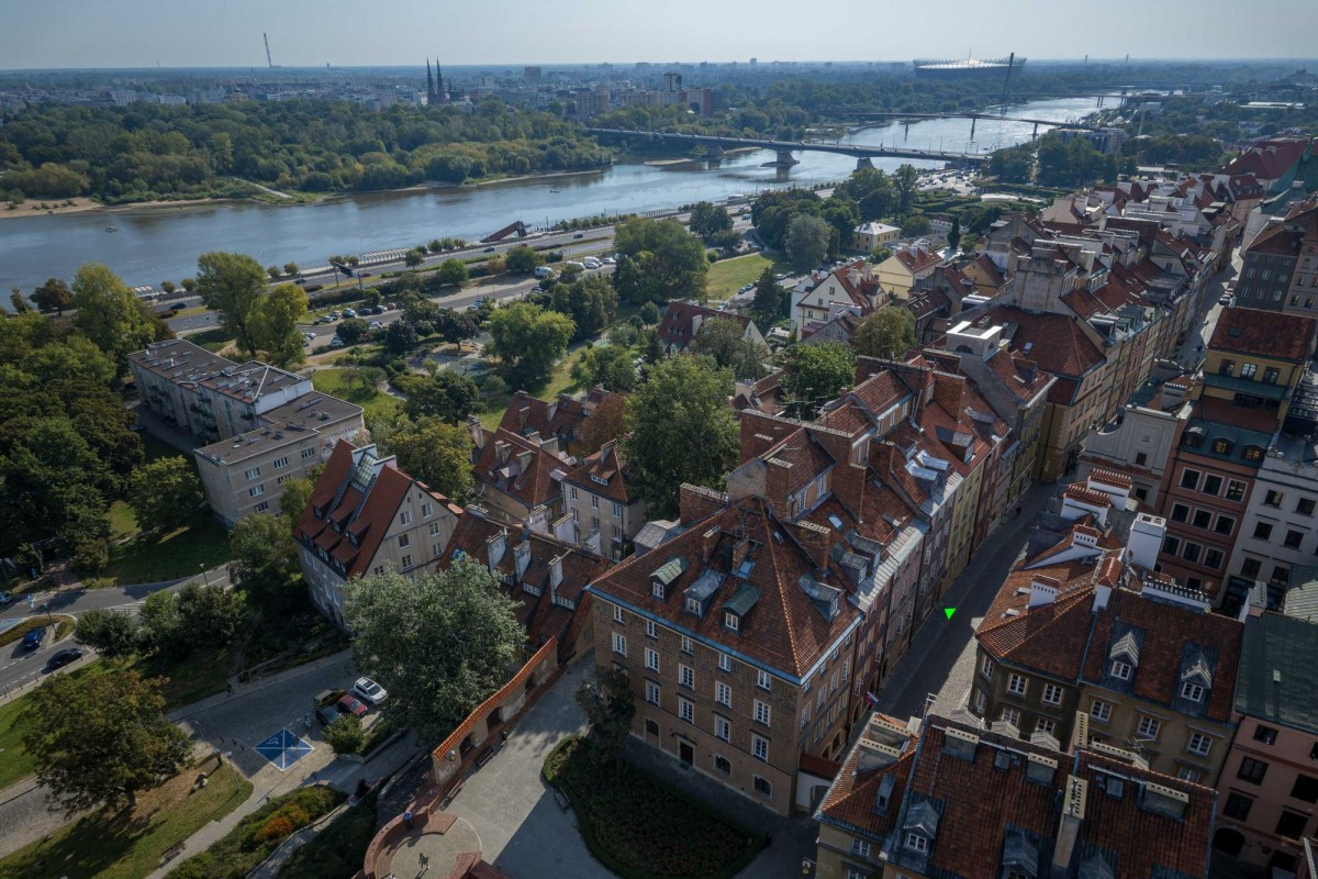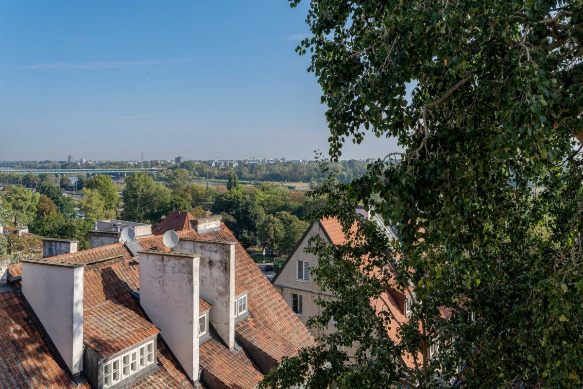 Z okien tego jakże klimatycznego wnętrza, roztaczają się zapierające dech w piersiach pejzaże niczym z kart starej kroniki. Od wschodu rozpieszcza nas widok ze szczytu skarpy, skąd podziwiać możemy majestatyczne dachy kamienic, Bulwary Wiślane i prawobrzeżną Warszawę, których panorama każdego ranka budzi do życia, a o zachodzie dnia zamienia się w spektakl barw. Zachwyca również wewnętrzny dziedziniec - zaciszna enklawa roztaczająca swój czar wśród otulonych zielenią historycznych murów z ławeczką zapraszającą do kontemplacji bądź chwili lektury w pierwszych promieniach babiego lata. Drewniane okiennice wnoszą przy tym do wnętrza mnóstwo światła, a poranne słońce rozlewa się po każdym kącie, począwszy od salonu, przez przytulną sypialnię, aż po widną kuchnię.