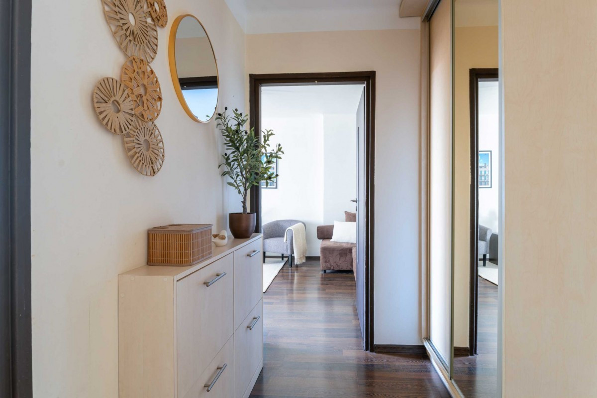 Znajdujące się w odrestaurowanej z niezwykłą pieczołowitością kamienicy mieszkanie, kusi niebywałym urokiem wszystkich tych, którzy pragną zamieszkać w sercu stolicy. Już wchodząc przez masywnie, bogato zdobione drzwi czuć tutaj powiew historii i sztuki, który dopełniają gotyckie łuki i pięknie wyeksponowana na klatce schodowej mini galeria dzieł pędzla artystki mieszkającej w kamienicy. Przekraczając próg mieszkania, nastaje jednak cudowna cisza - aż trudno uwierzyć, że zaledwie kilka kroków stąd tętni życiem Rynek Starego Miasta.