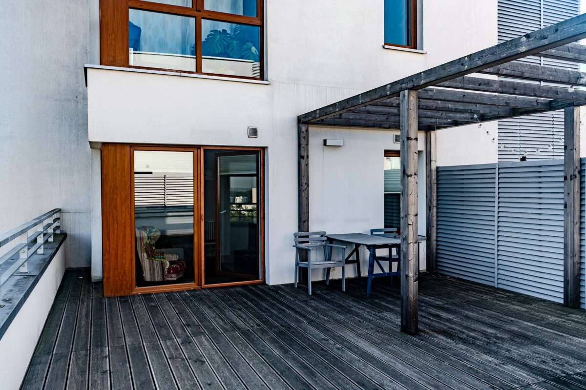 Wyjątkowe miejsce w samym sercu miasta. Ekskluzywne, w pełni umeblowane mieszkanie trzypokojowe na 9. piętrze, z przestronnym tarasem oraz osobnym balkonem typu loggia, zapewniające spektakularne widoki na panoramę Warszawy.