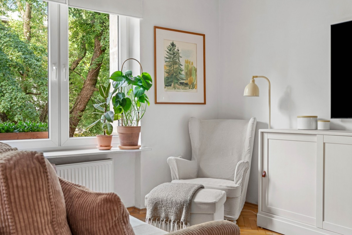 Mieszkanie jest wyjątkowo ciche dzięki widokowi i położeniu względem zieleni.