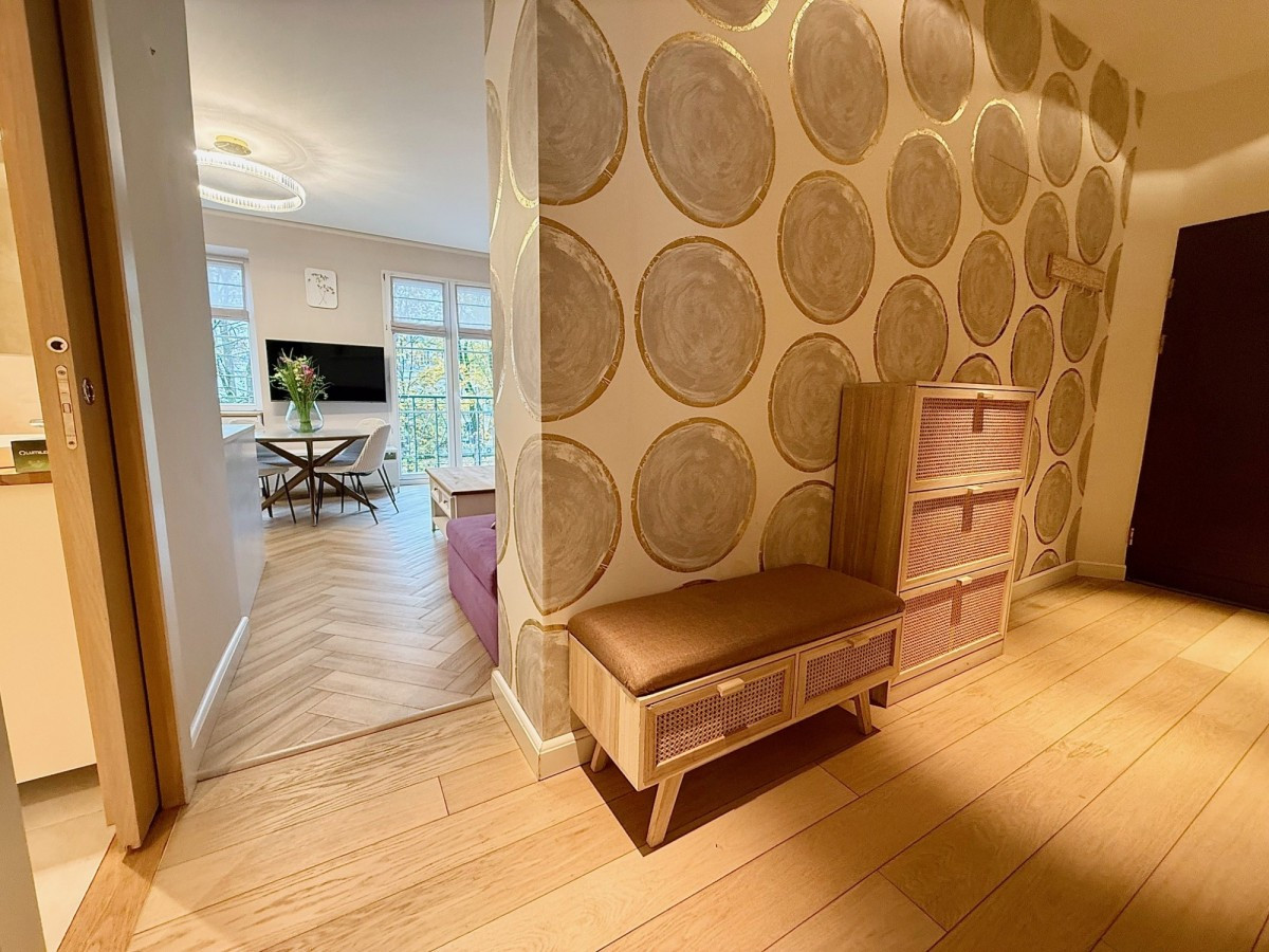 Mieszkanie ma 3 metry wysokości, jest w pełni umeblowane i wyposażone.