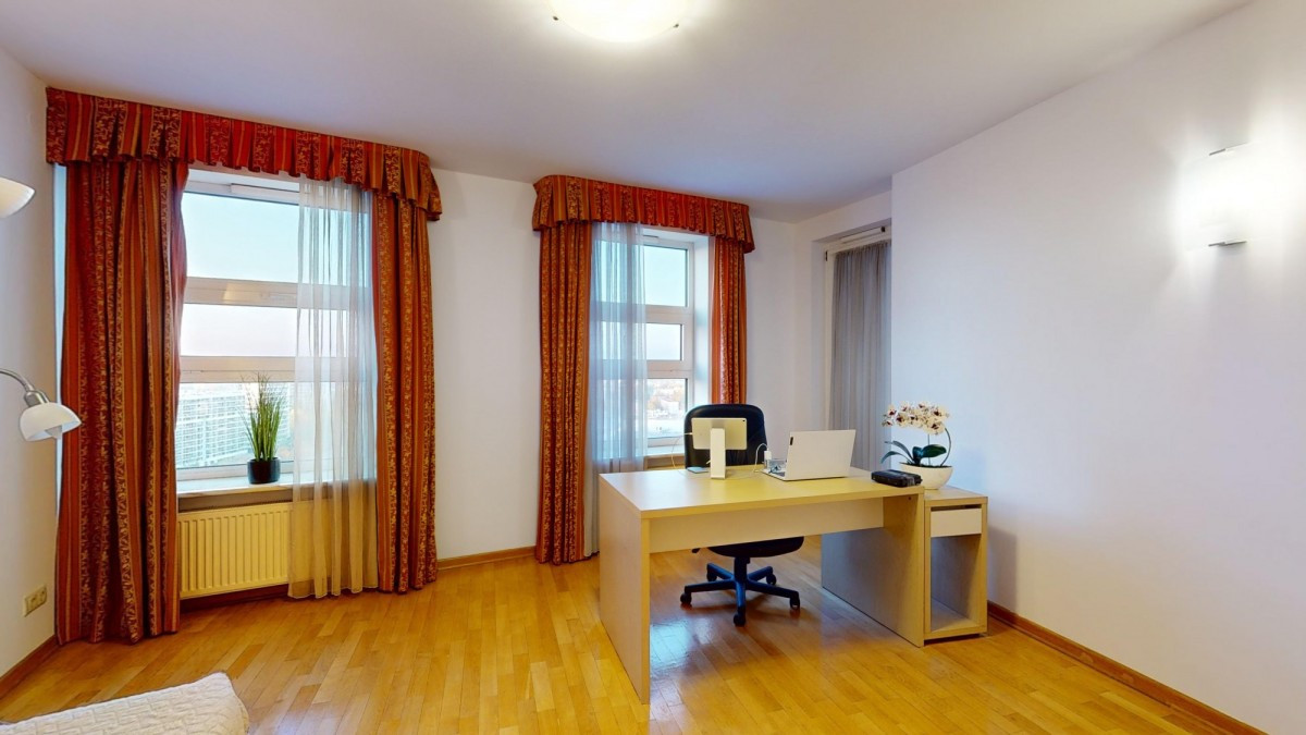Widok na panoramę Warszawy: Unikalna lokalizacja apartamentu sprawia, że codziennie można podziwiać widok na miasto z jego wszystkich urokami i światłami.