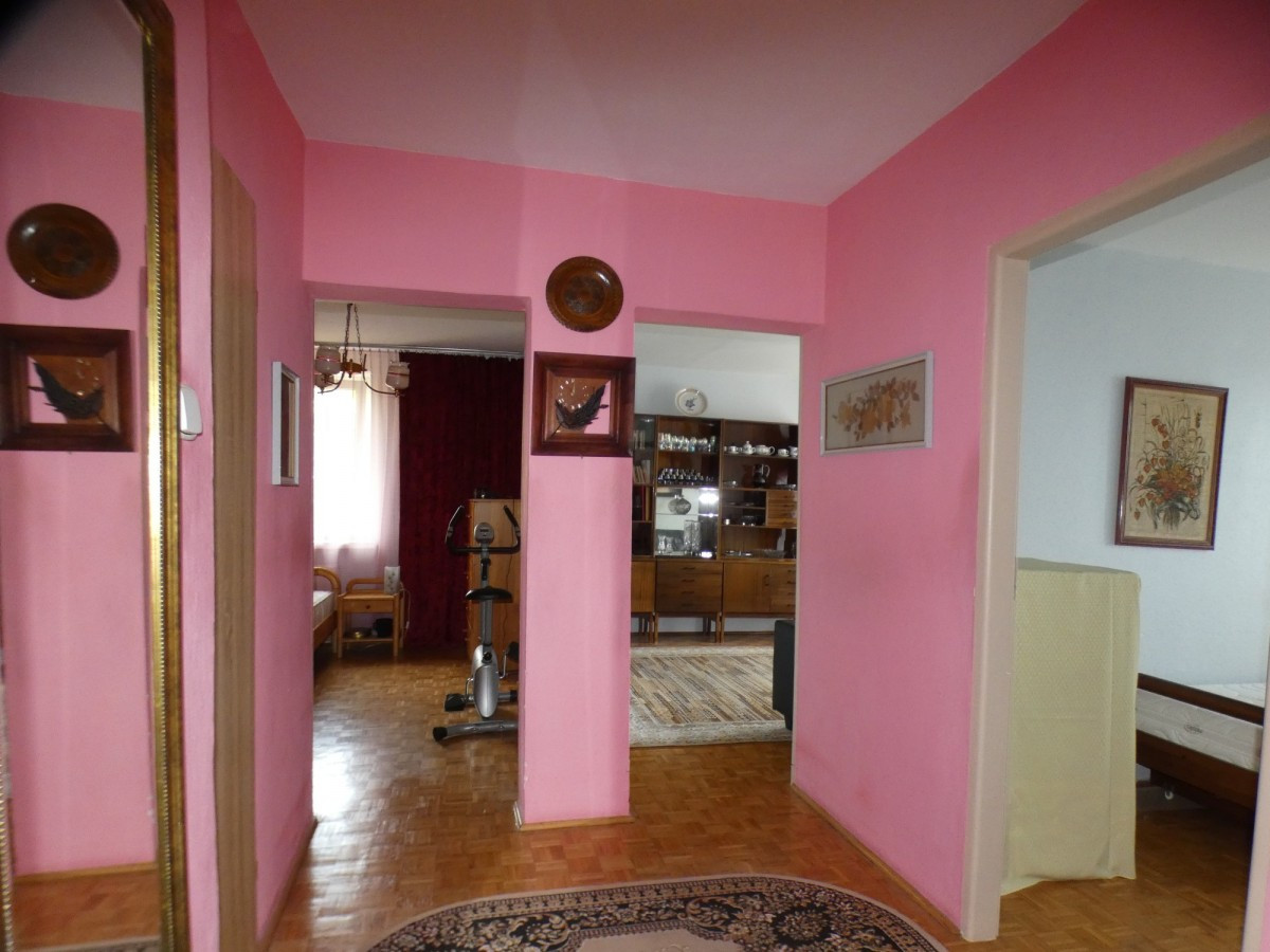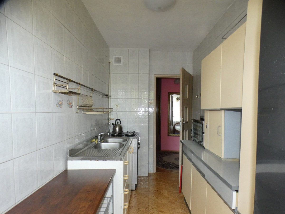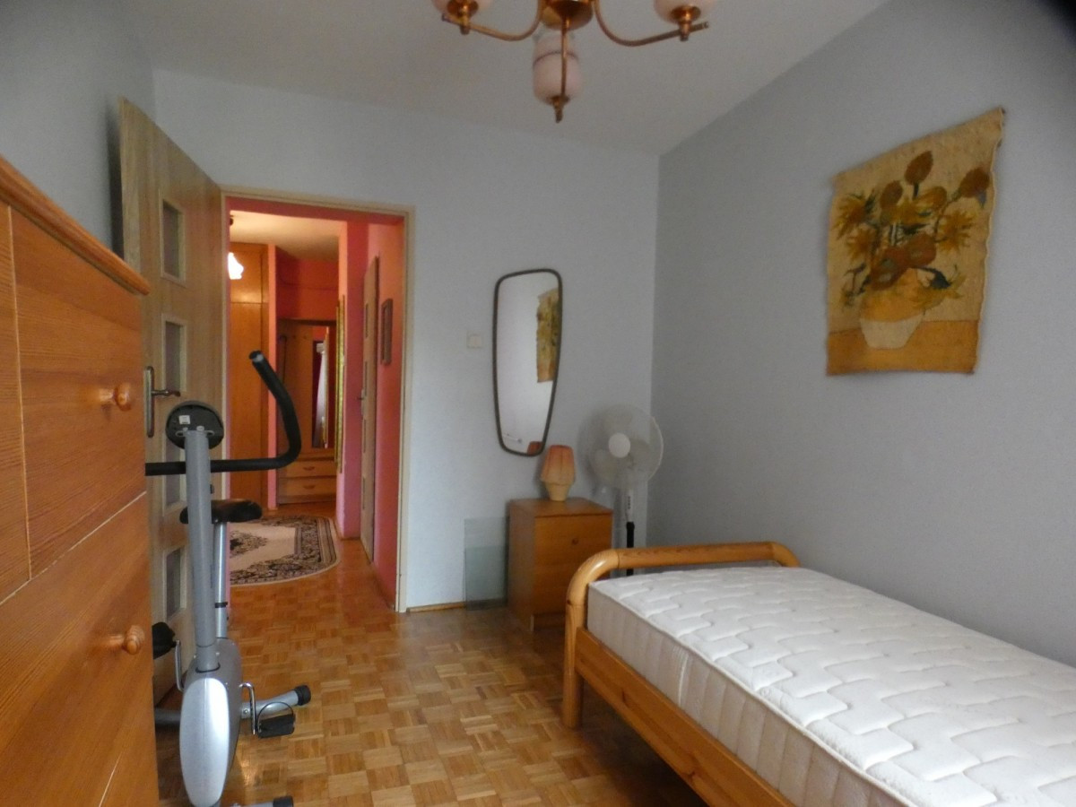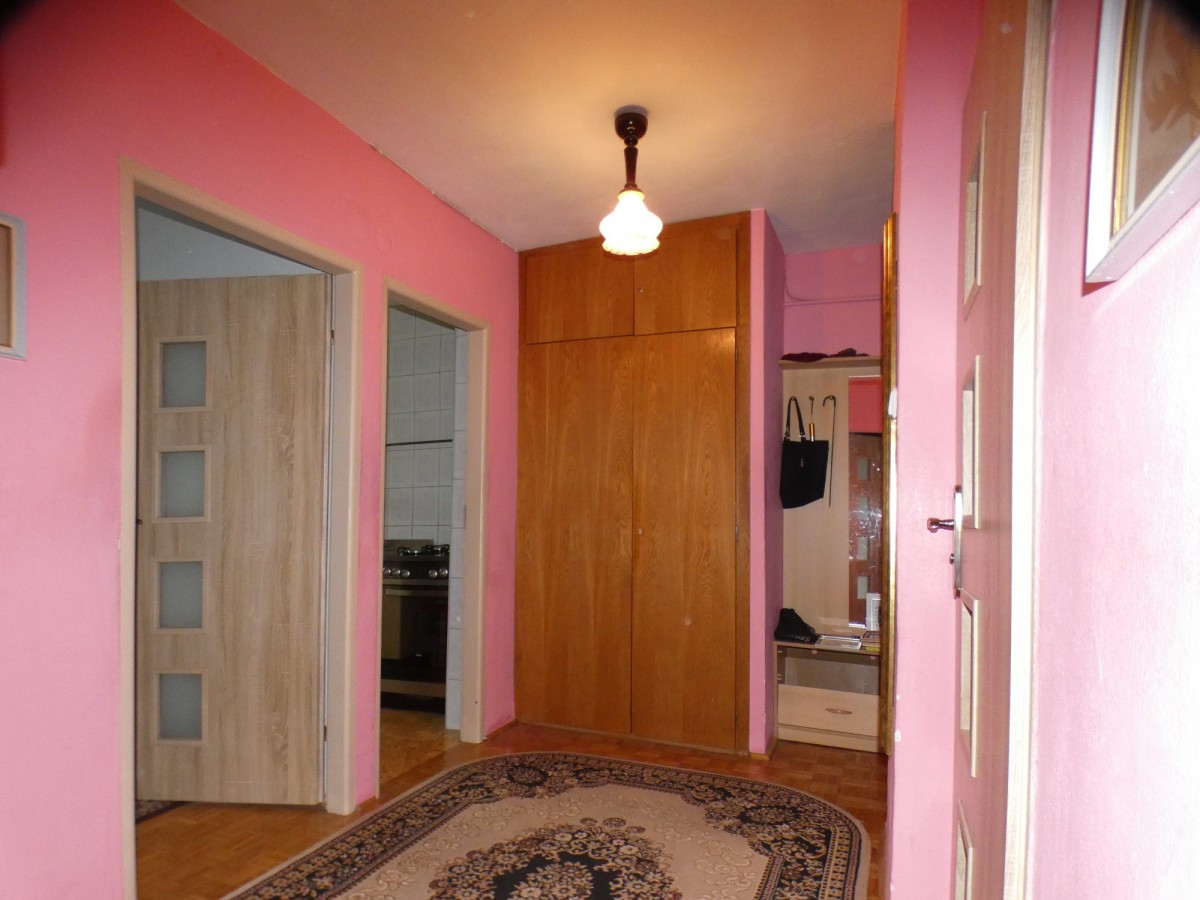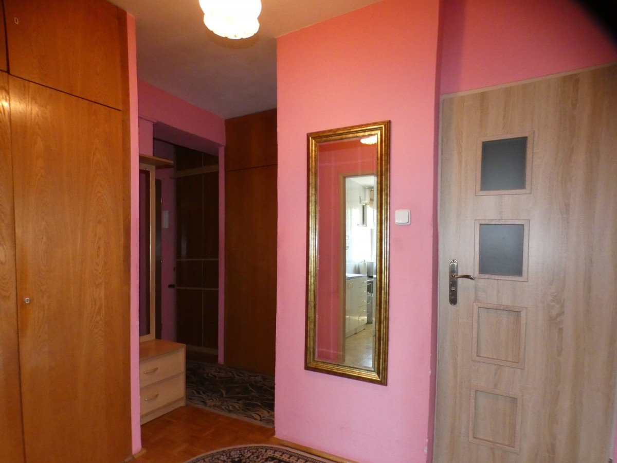 Samo mieszkanie ma bardzo dobry układ , składa się z trzech pokoi ( 18, 8, 7 m2 )w tym duży pokój z wyjściem na loggię , widnej ( 8m2 ) kuchni, łazienki z wc oraz dwóch przedpokoju i szafami wnękowymi..