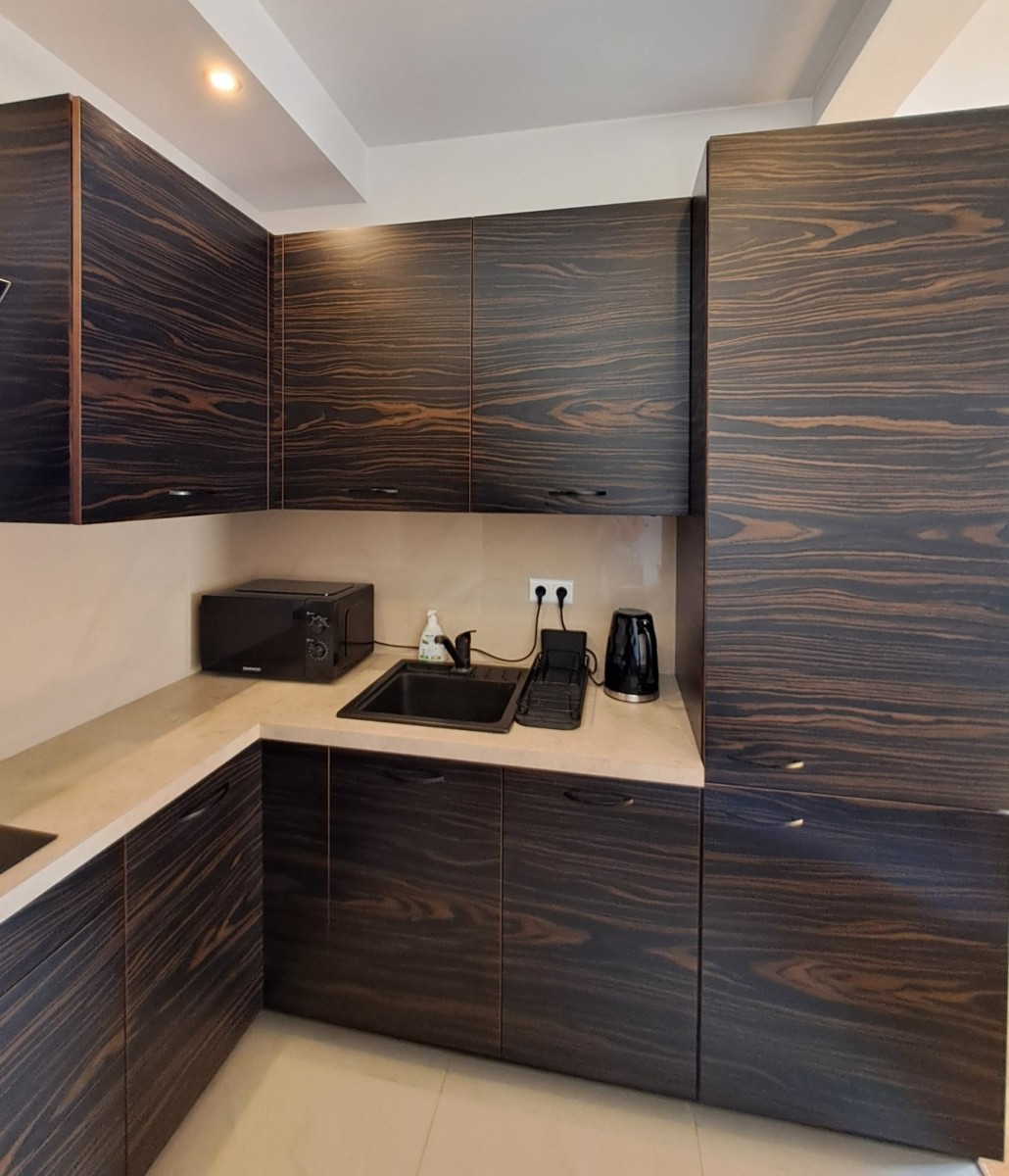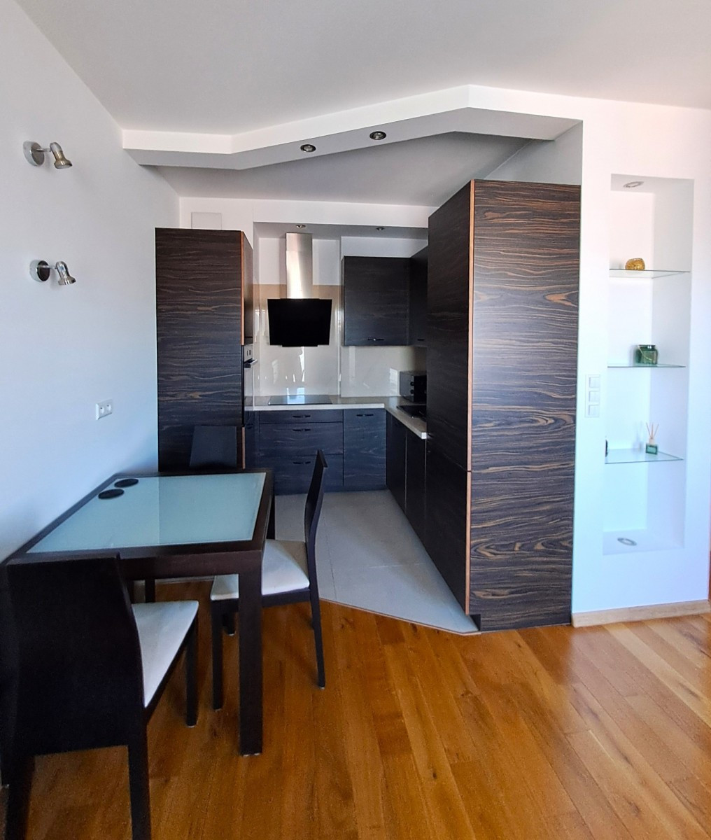 Mieszkanie gustownie urządzone, jasne, zlokalizowane na ostatnim, szóstym piętrze. Panoramiczne okna od podłogi do sufitu zapewniają dużo światła dziennego.