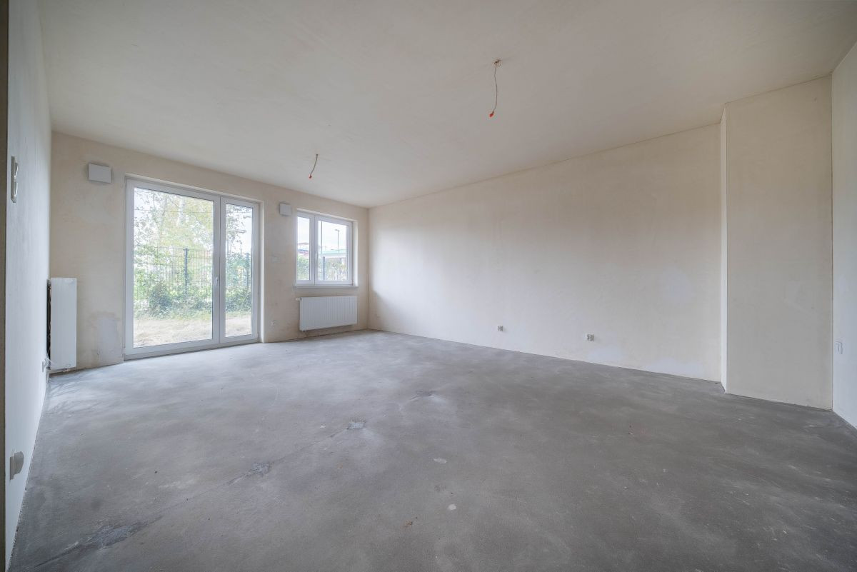 - przestronną część dzienną łączącą salon z aneksem kuchennym, z wyjściem do prawie 40 m2 ogródka