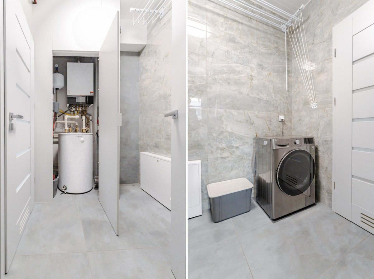 W całym domu zastosowano ogrzewanie podłogowe, a źródłem ciepła jest piec gazowy Viessmann z dużym zasobnikiem wody.