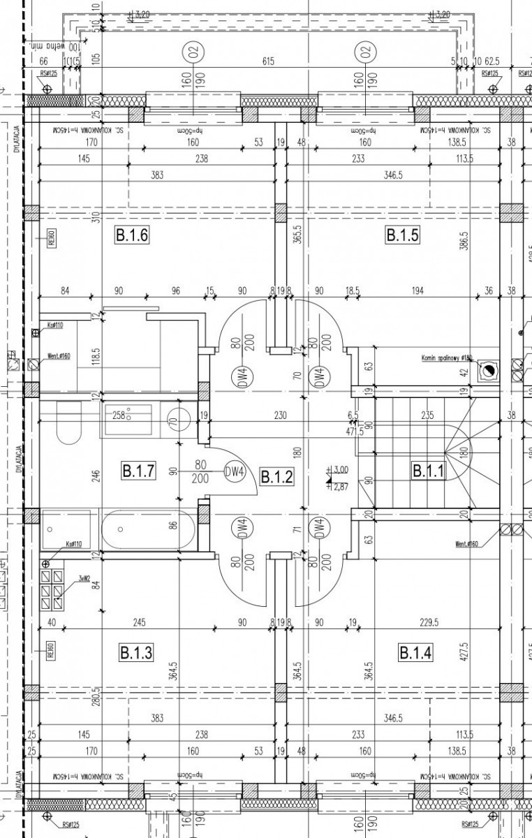 Na piętrze zaplanowano cztery wygodne sypialnie (12,5 m², 13 m², 13 m², 14,5 m²), dużą łazienkę (6,2 m²) z wanną i prysznicem oraz przestronny hol.