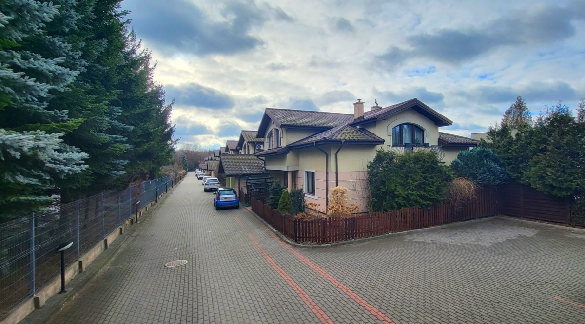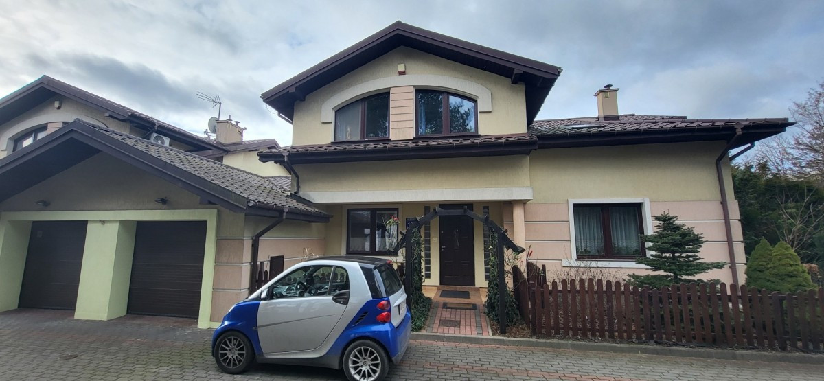 Budynek połączony z sąsiadem tylko jedną ścianą garażową.